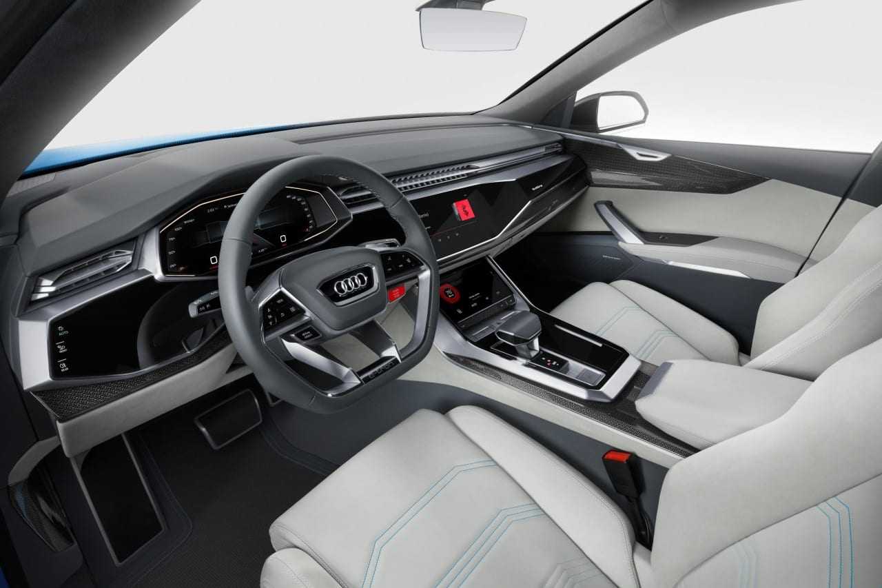 Το επερχόμενο Q8 απέκτησε το concept που επιτέλους βγάζει από την αφάνεια το σχεδιαστικό τμήμα της Audi που μέχρι σήμερα μάλλον έκοβε έξοδα στην εταιρία για λόγους λογιστικούς. Με couple-like γραμμές και όμως μια full-sized SUV αισθητική. Σχεδιασμένο για τέσσερα άτομα και τις αποσκευές τους. Το Q8 αν και εμφανώς τεράστιο, έχει καμπίνα 2+2 με Nappa και Nubuck δέρμα μαζί με high-gloss carbon και το όμορφο aluminum.