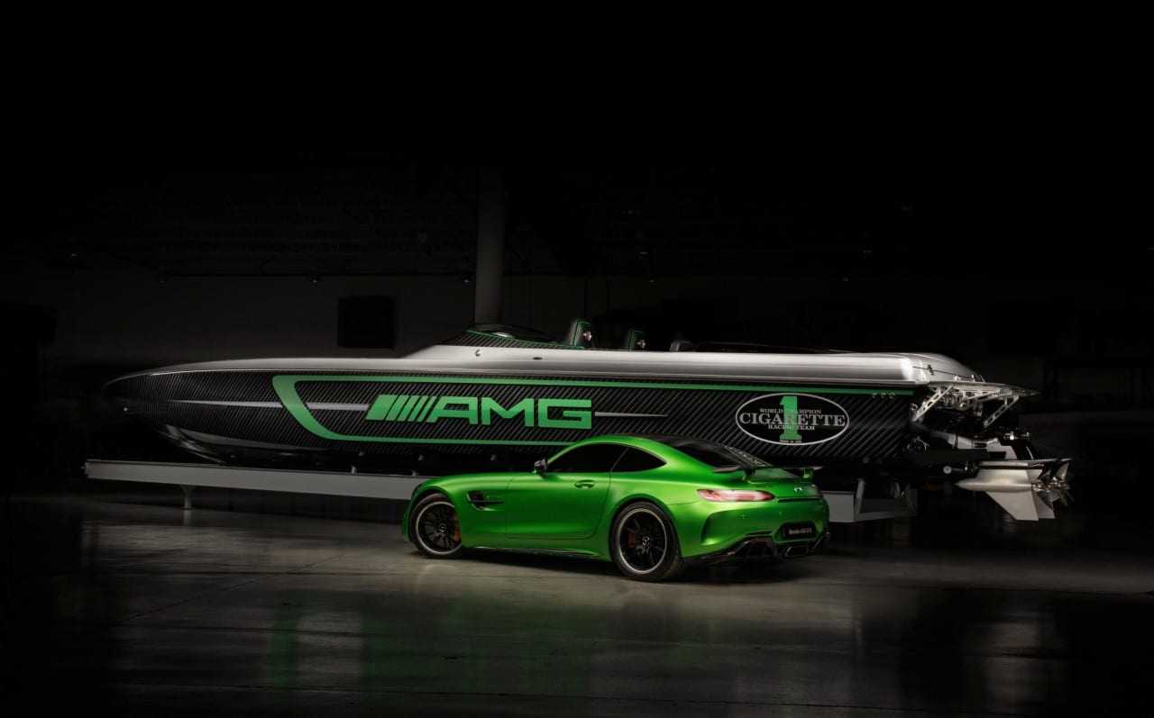 Οι συνεργασίες ανάμεσα σε εταιρίες επιδόσεων πάντα έχουν ενδιαφέρον. Και τώρα τα γράμματα της AMG θα συνδεθούν με την εταιρία κατασκευής σκαφών υπερεπιδόσεων Cigarette. Και τώρα η 10η επέτειος για το all-new 50′ Marauder. Το αυτοκίνητο έχει σαν έμπνευση το AMG GT R, το high-performance coupe με έναν 4.0L V8 και 577-hp.