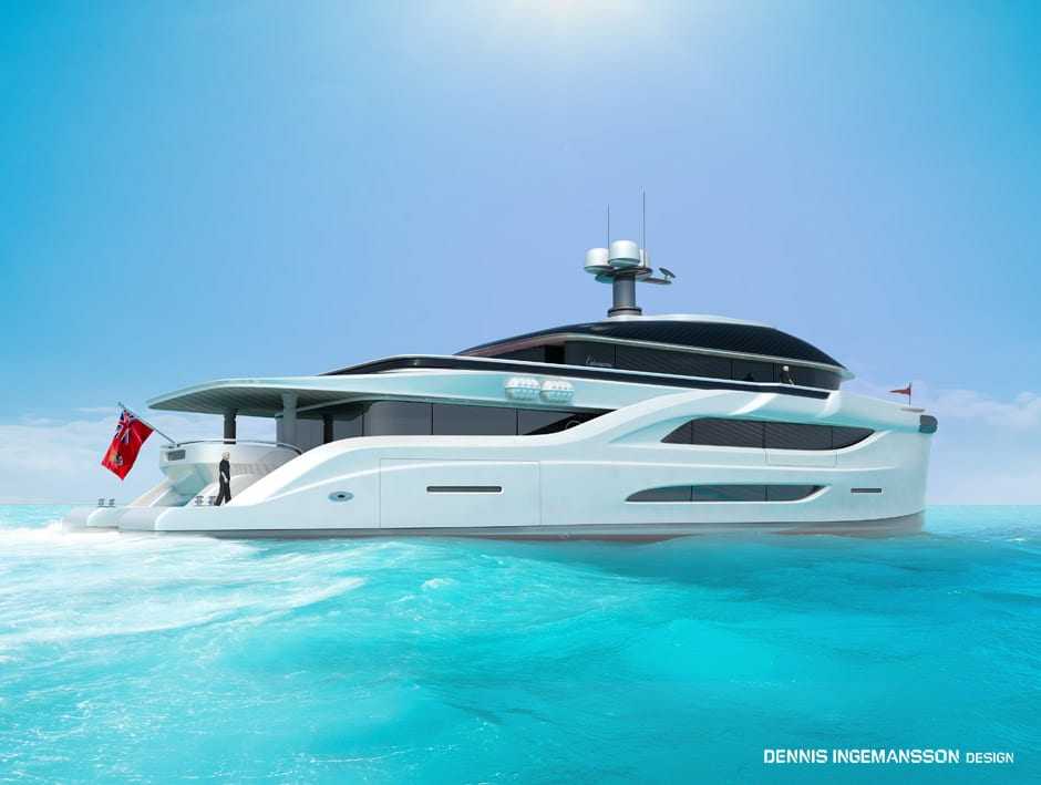 Μήκος 42 μέτρα όμως, ταχύτητα maximum στους 22 κόμβους και 580 τετραγωνικά μέτρα μέσα. Για οκτώ καλεσμένους, τέσσερα άτομα πλήρωμα και καπετάνιο. Με μείγμα από composites και carbon, σχεδιασμό sleek design και γέφυρες που αλλάζουν ύψος (!)