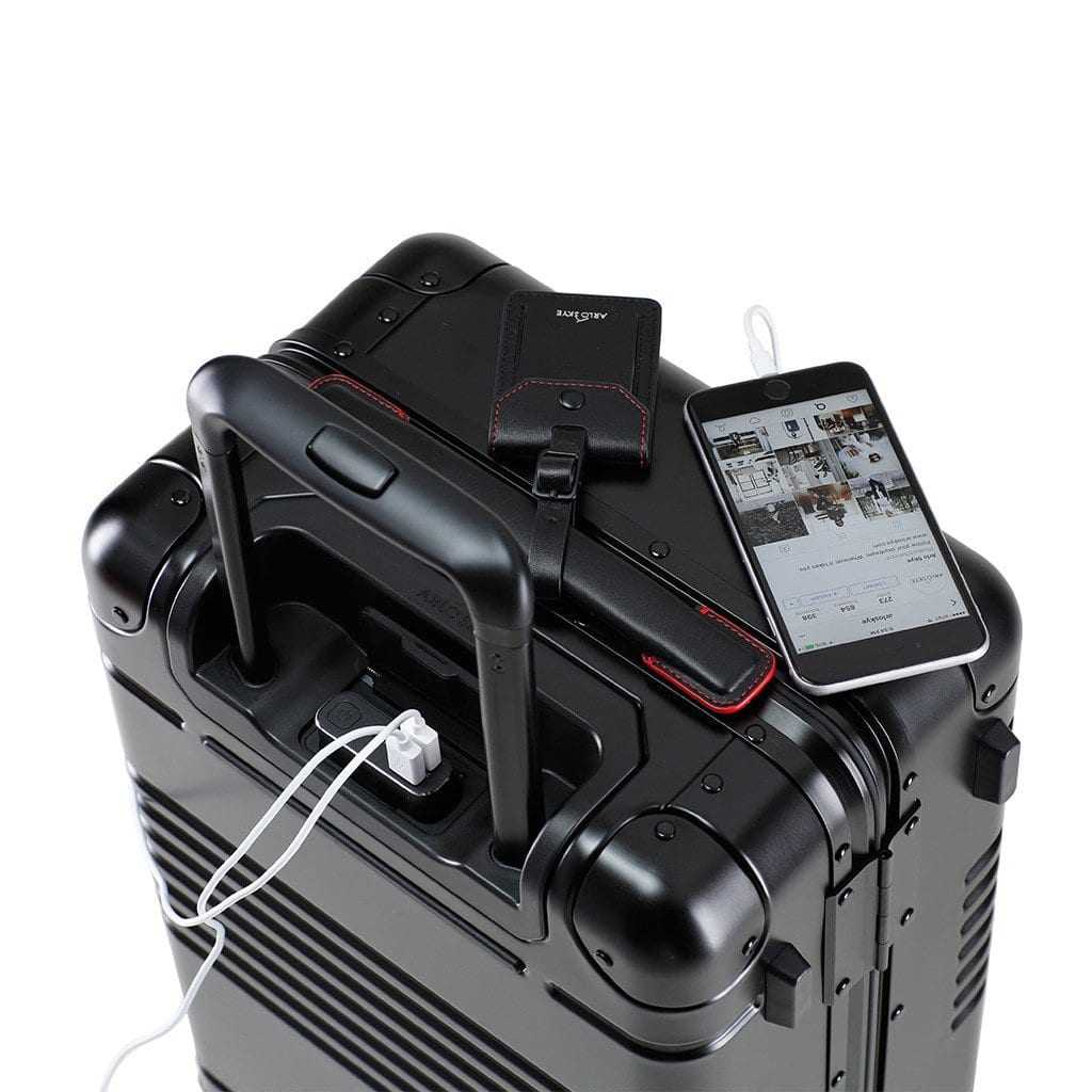 Η συνεργασία είναι με την Arlo Skye για τη δημιουργία μιας όμορφης aluminum βαλίτσας. Μ<ε vault-like σχεδιασμό και ένα υπέροχο matte black κέλυφος όπως και full-grain δέρματα στα χερούλια. Και το Audi signature red pantone χρωματάκι..