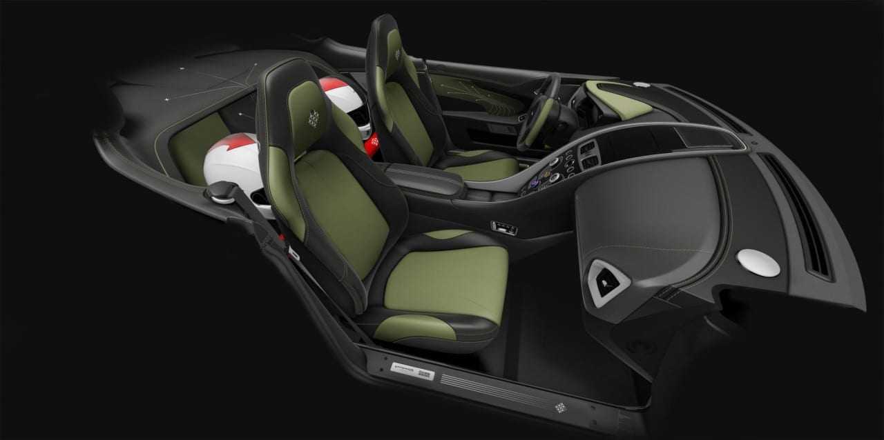 Το δε exposed carbon fiber στην οροφή κρύβει μια ακόμη λεπτομέρεια. Ένα σχέδιο που προσομοιάζει με την καλύπτρα των jet. Μαζί μια Union Jack ενώ μέσα γεμάτο λεπτομέριες. Ακόμη και Pinewood green σε καθίσματα, ζώνες, εσωτερικά panels αλλά και κεντήματα με τους Red Arrows σε σχηματισμούς! Ως special, έχει και μικρή παραγωγή. Μόλις 10 Red Arrows Aston Martins θα φτιαχτούν, τα 9 διαθέσιμε μέσω του Aston Martin Cambridge.