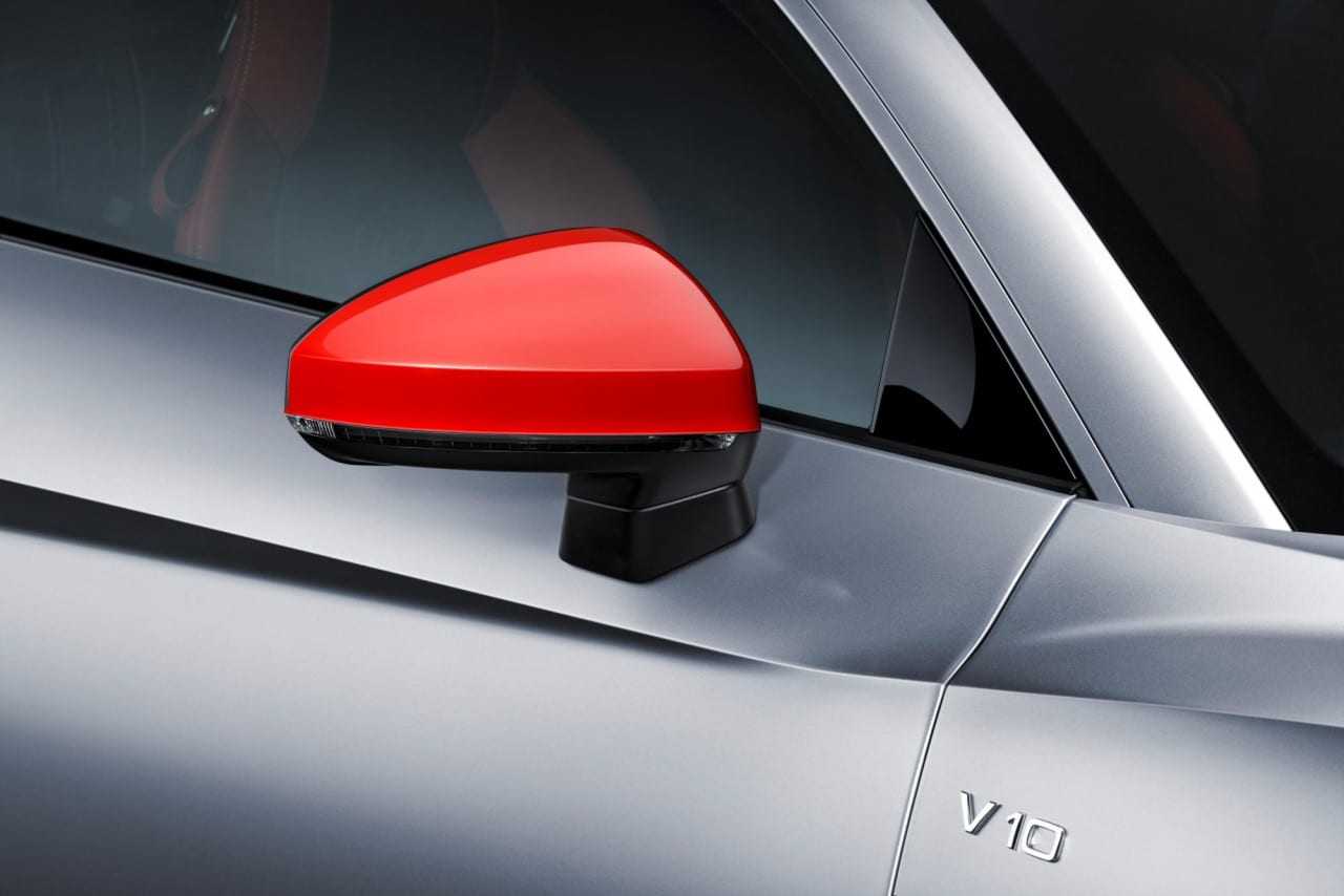 Με κόκκινες λωρίδες και diffuser inserts σε titanium black, 20αρηδες τροχούς σε gloss anthracite black, a Nappa μαύρο και κόκκινο μέσα και gloss carbon φινιρίσματα. Σε εκδόσεις με τον standard V10 ή τον V10+ και μόλις $193,000.