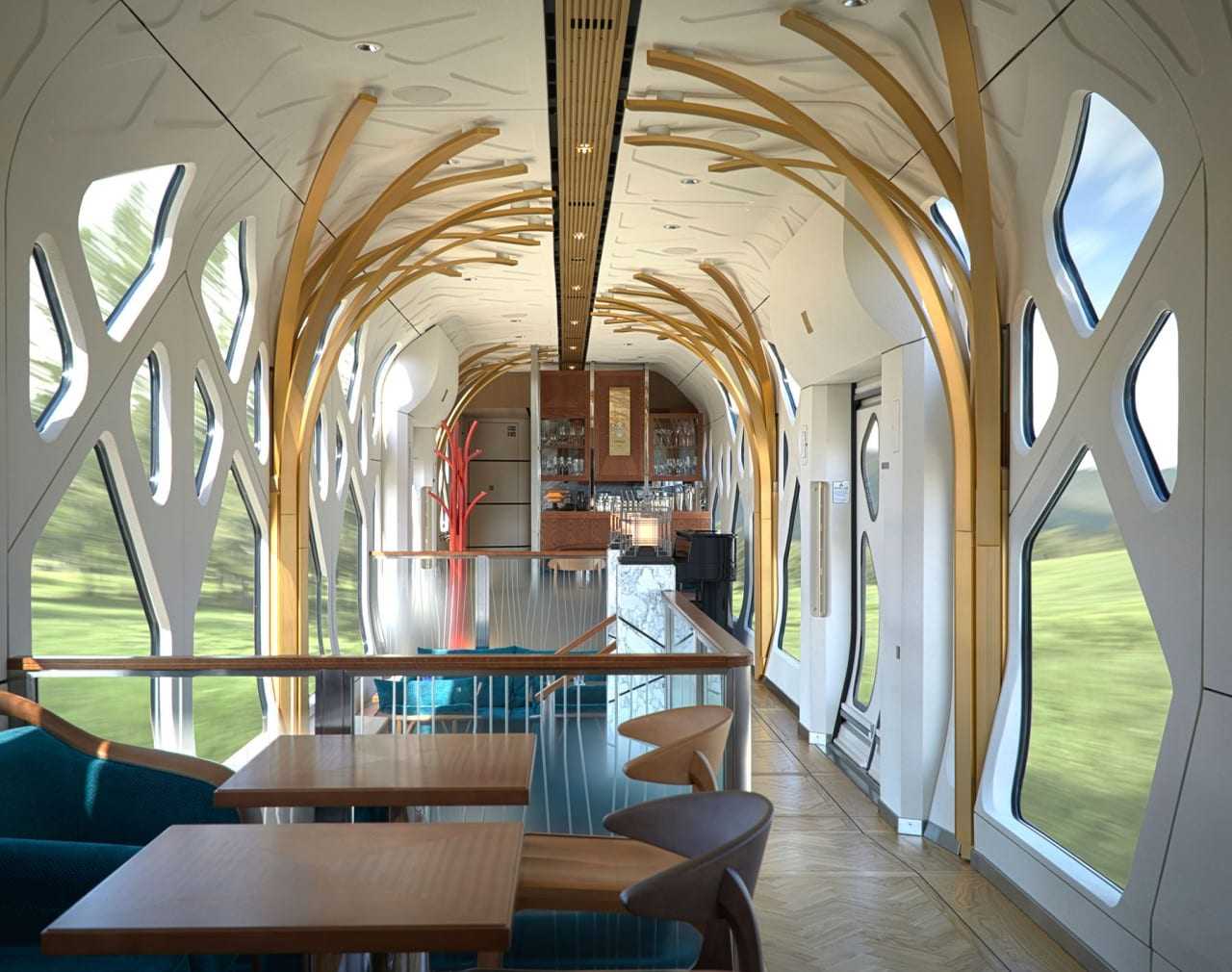 Χώρος δείπνου, κουζίνα Ιαπωνική, καταπληκτικό lounge, δύο observation cars, βαγόνια παρατήρησης με παράθυρα μόνο, σουίτες και ειδικά δρομολόγια. Δυστυχώς όλες οι θέσεις είναι κλεισμένες για τον επόμενο χρόνο. Λίγη υπομονή.