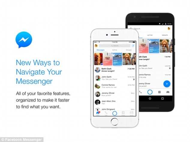 Στο update έχουμε νέα tabs πάνω από τη Messenger main screen για μετακίνησει ανάμεσα σε messages, active contacts και groups. Επιπλέον, με μια κόκκινη κουκίδα θα σε πάει σε άλλες περιοχές σε sections και tabs, όλα με highlight σε νέους τρόπους επικοινωνίας εκτός από τα μηνύματα.