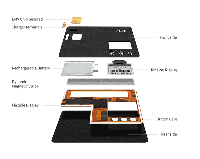 Το τέλος στο πορτοφόλι γεμάτο πιστωτικές κάρτες υπόσχεται η Fuze Smart Credit Card. Ναι, σωστά. Σε δύο εκδόσεις, μια με EMV chip και μια κανονική έχει το πάχος μιας κανονικής κάρτας και μπορεί να αποθηκεύει έως και 30 κάρτες τη φορά.