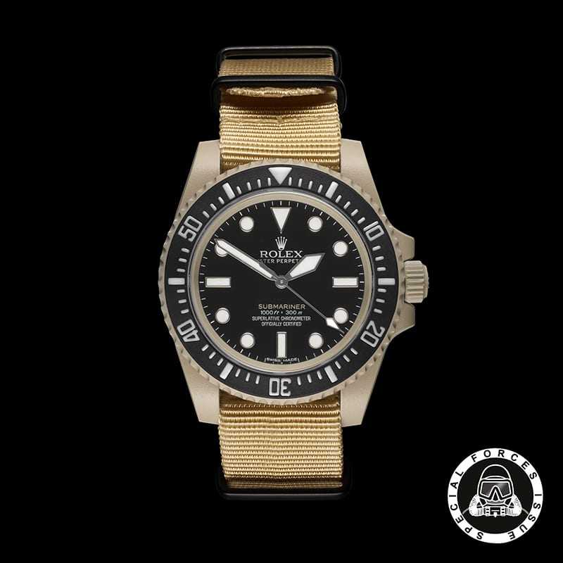 Ειδική έκδοση της Special Forces Issue με ‘Desert Sand’ coating αλλά και: έτοιμα Military bars, ‘Submariner’ κείμενο και custom δείκτες σαν σπαθιά όπως και custom rubber bezel με φωσφορούχο. Μαζί με pelican θήκη και τρία NATO λουράκια.