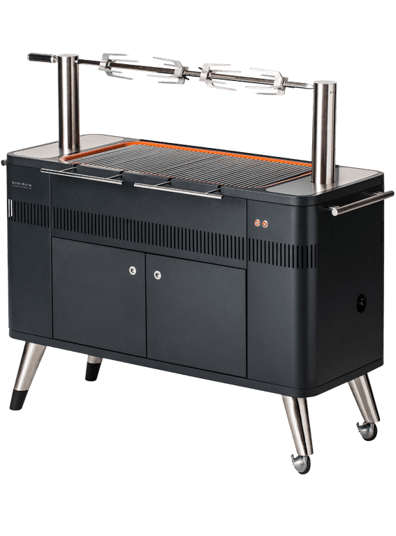 Το κατασκευάζουν οι Ολλανδοί και έχει σύστημα Fast Flame Ignition System για να κάνουν δουλίτσα τα κάρβουνε σε 10 λεπτά όπως και αποθηκευτικό χώρο. Με πορσελάνη – porcelain enamel firebox, και χώρο για την καρβουνιά. Και δουλειά κάνει και όμορφο…