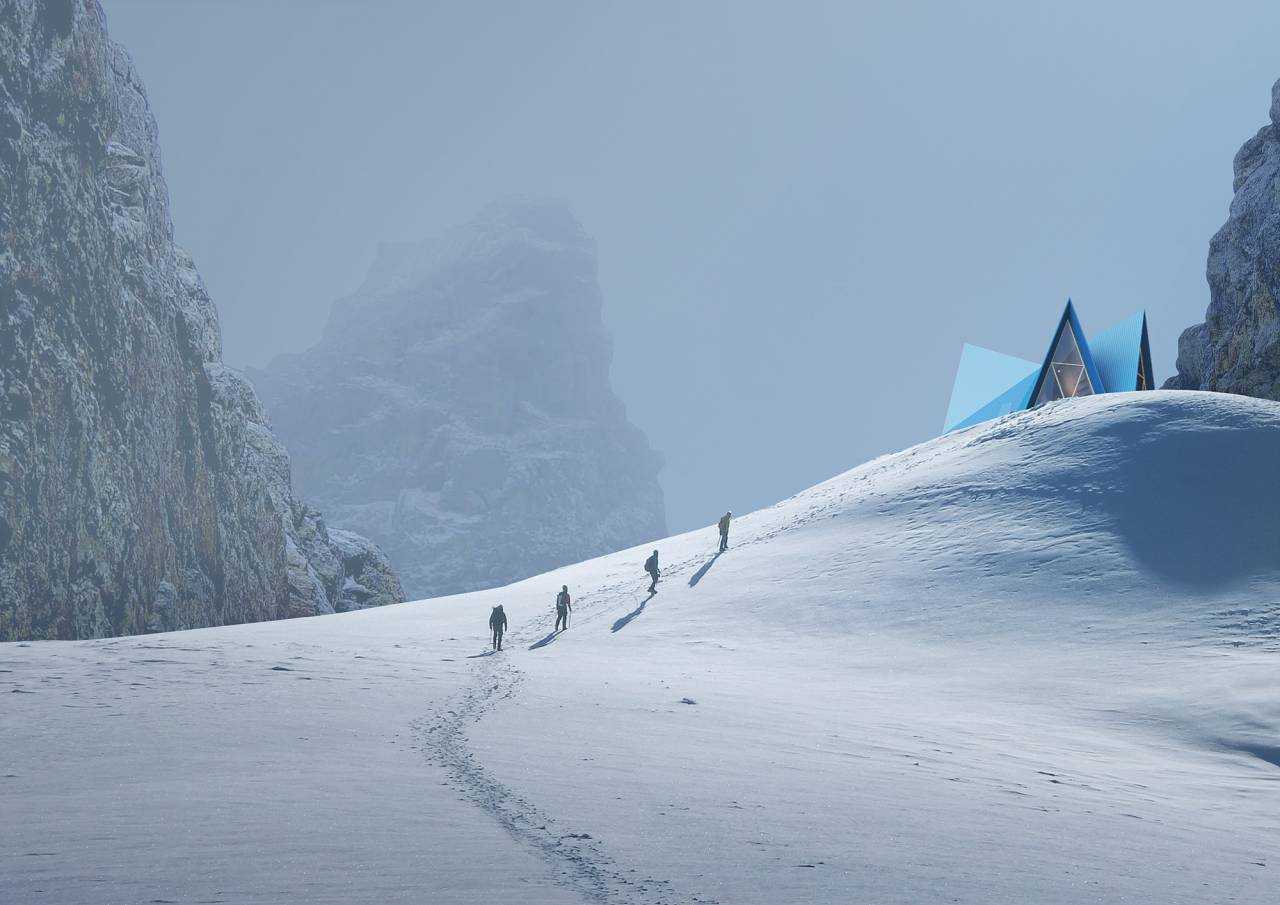 Ατσάλι και ξύλο, μέχρι και 15 άτομα, νέρο, ρεύμα, και emergency αποθέματα. Μια προκατασκευασμένη κατασκευή που φτάνει στο σημείο με ελικόπτερο.