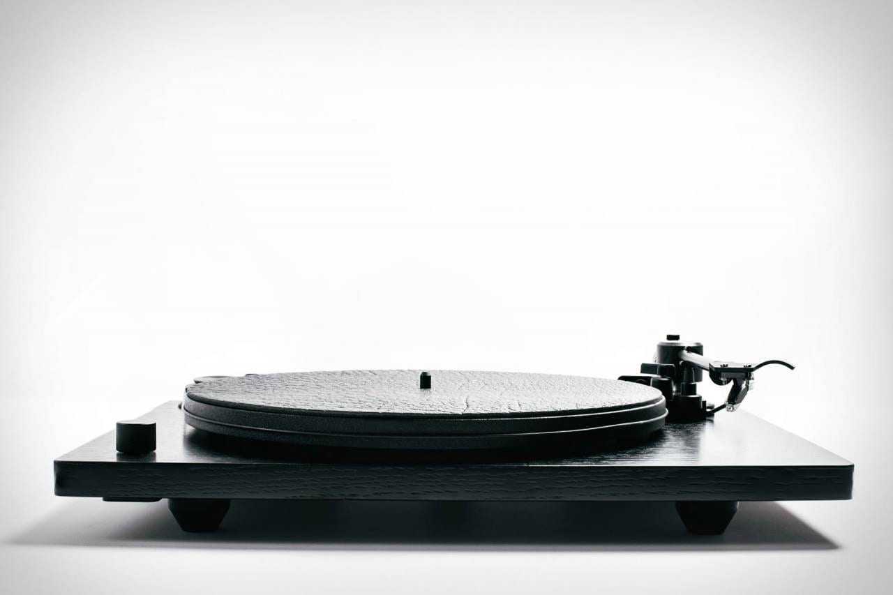 Με ένα απίθανο mat cut από bison δέρμα, μαύρο βραχίονα και custom on/off knob machined ειδικά. Με ενσωματωμένο pre-amp και pre-installed Ortofon OM 5E cartridge, μπορείς να το στήσεις κατευθείαν με powered ηχεία! Απλό.