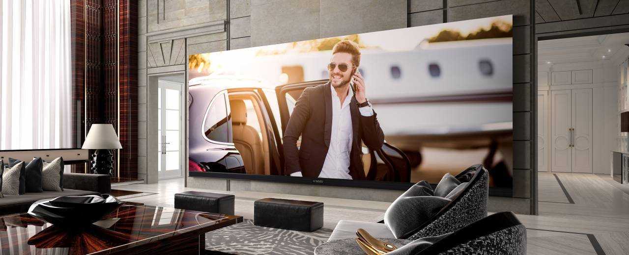 Μια 4K LED TV με black LED τεχνολογία, ultra high definition, και 10 high-end ηχεία της L-Acoustics. Μαζί και ένας 4K media server, όπως και ένα motorized κάλυμμα!