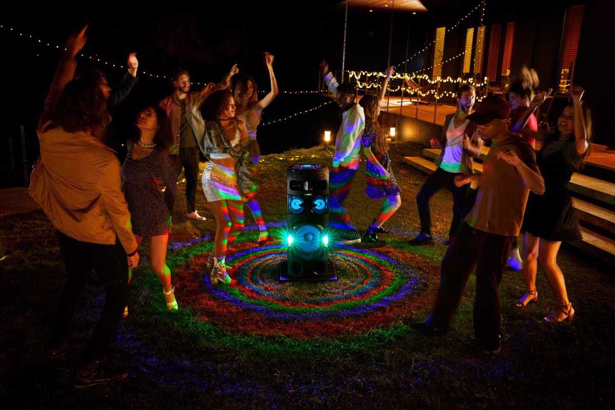 Συνδέστε ήχο αλλά και φίλους, με τη λειτουργία Wireless Party Chain, που μπορεί να συνδέσει μέχρι και 50 συμβατά συστήματα μαζί.Χρησιμοποιείστε τη σύνδεση πολλών συσκευών ώστε να περάσετε τη δύναμη του DJ σε όλους συνδέοντας τα smartphones στο ηχείο, και δίνοντας στους καλεσμένους τη δυνατότητα να βάλουν εύκολα το δικό τους αγαπημένο κομμάτι.