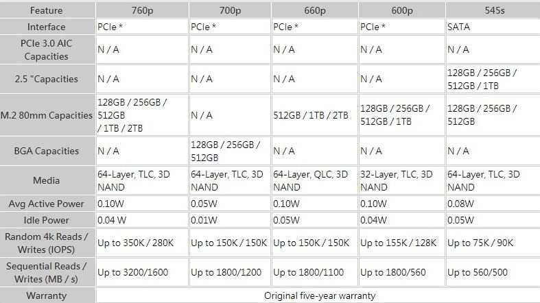 To Intel 760p SSD θα είναι σε σχήμα M.2 PCIe με 64-layer TLC (triple-level cell ) 3D NAND και σε: 128GB, 256GB, 512GB, 1TB και 2TB, με sequential read ταχύτητες στα 3,200 MB/s και write σε 1,600 MB/s. WoW.