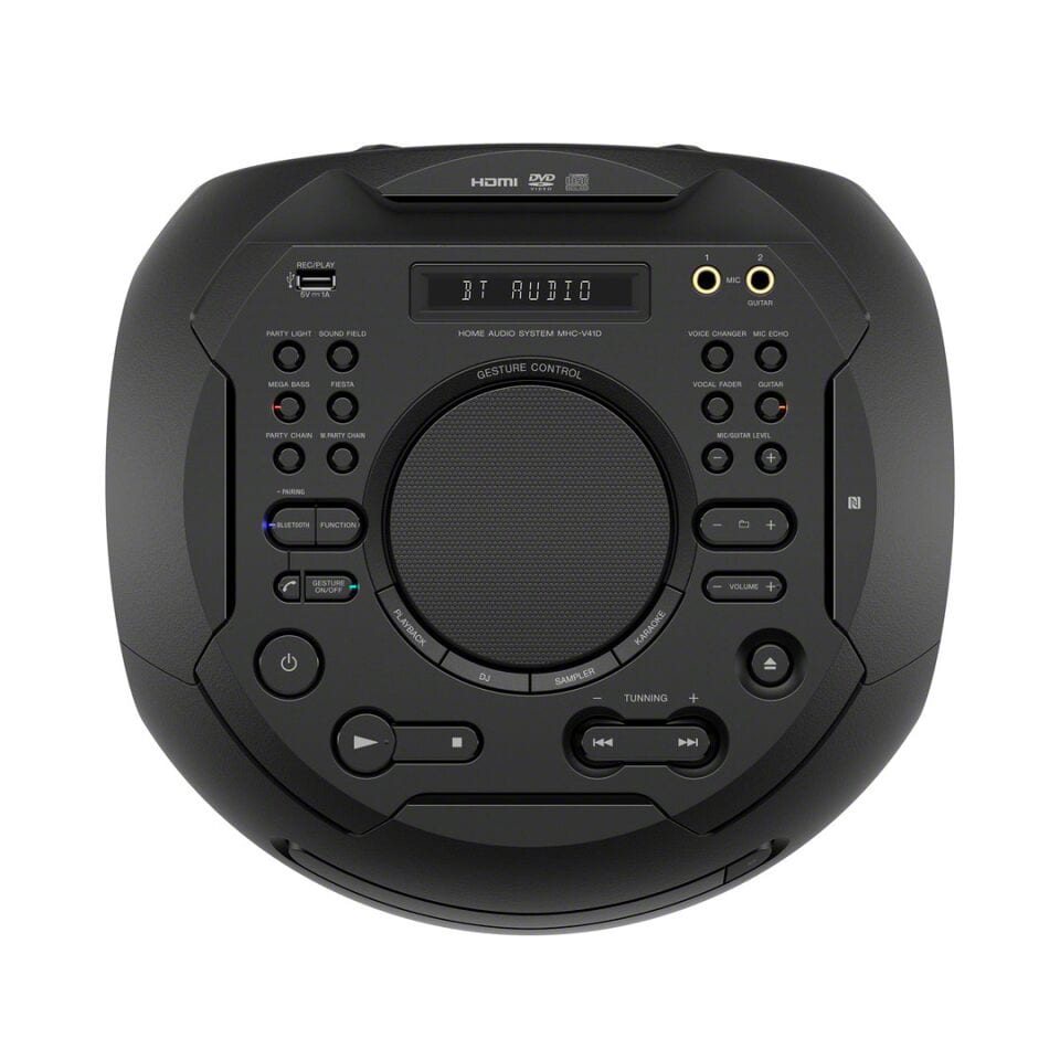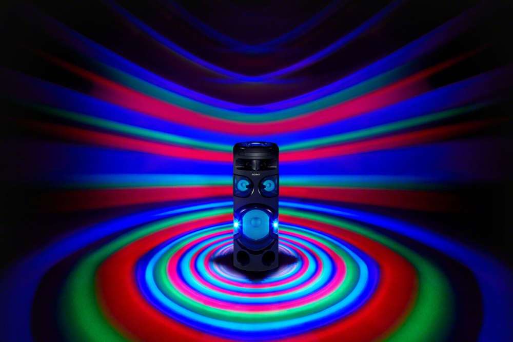 Όπως και άλλα συστήματα υψηλής ισχύος ήχου, το MHC-V90DW είναι εξοπλισμένο με τεχνολογία SmartHighPower, αλλά και με άλλες τεχνολογίες ήχου όπως EXTRABASS, ClearAudio+ και DSEE. Το MHC-V90DW αγγίζει στο ύψος τα 170 cm και ως εκ τούτου αναμένεται να«αγγίξει» και την ψυχή σας.Ο ενσωματωμένος φωτισμός δημιουργεί μια πραγματική ατμόσφαιρα ντίσκο. Το πολύχρωμο φωτορυθμικόαποτυπώνει όμορφα μοτίβα στον τοίχο, ενώ ταledφώτα στα ηχεία αναβοσβήνουν. Αυτό το”all-in-one” σύστημα είναι εύκολο στη μεταφορά, χάρη στις ενσωματωμένες του ρόδες, αλλά και επειδή είναι πολύ συμπαγές.