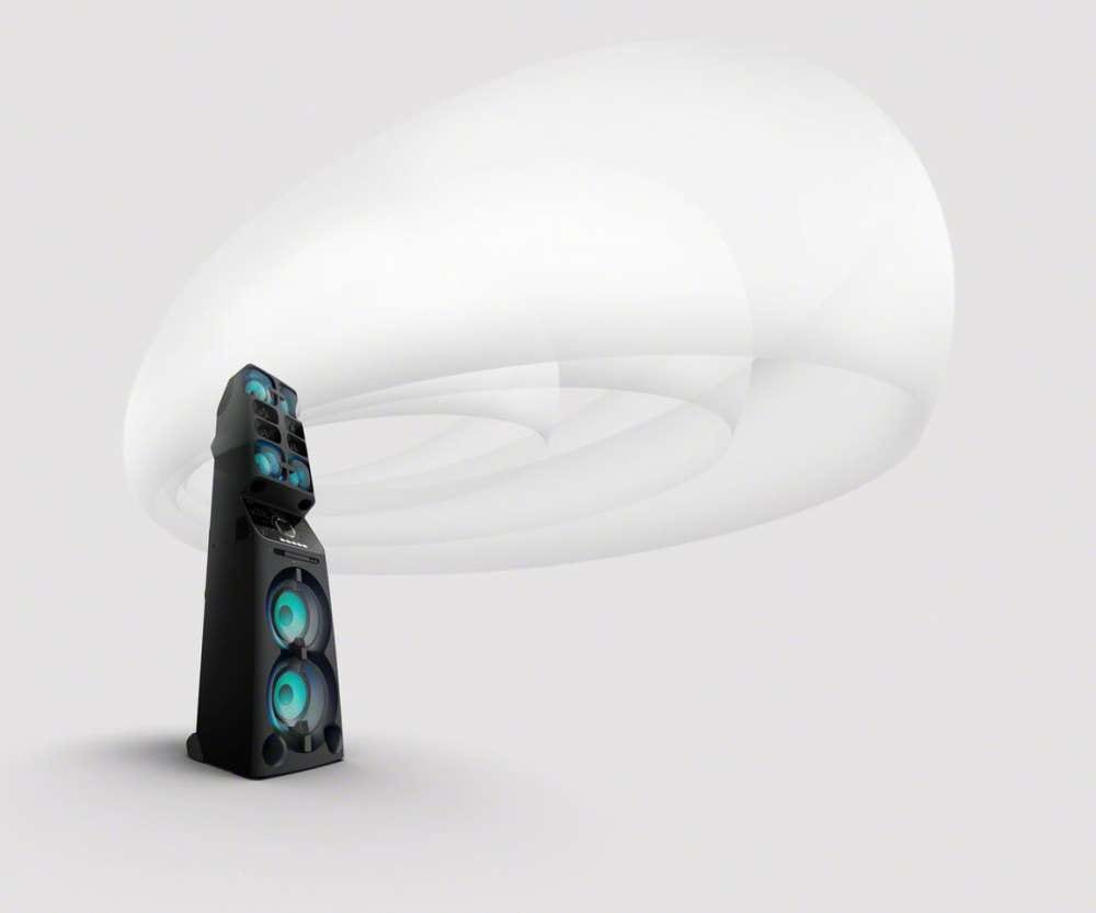 Το high-endμοντέλο (MHC-V81D) είναι εξοπλισμένο με λειτουργία 360° LIVESOUND. Το αποτέλεσμα; Τα φώτα είναι ορατά παντού και η πίστα μετατρέπεται σε πραγματική ντίσκο. Αυτά τα ηχεία είναι επίσης εξοπλισμένα με τεχνολογία LIVESOUND.