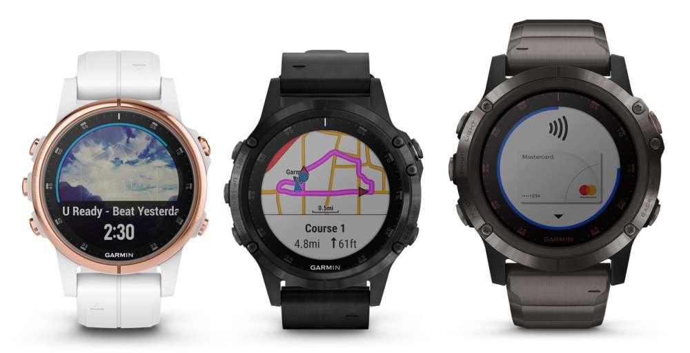 Πέρα από τα νέα Vivoactive 3, η Garmin με τα νέα της Fenix 5S Plus, Fenix 5 Plus και Fenix 5X Plus είναι πιο ώριμα και με περισσότερες επιλογές. Και μοντέλο PVD-coated από ανοξείδωτο ατσάλι αλλά και μοντέλο από ελαφρύ titanium. Διαστάσεις 42mm έως και 51mm ενώ το μικρό 42mm Fenix 5S Plus έχει πλέον 20% μεγαλύτερη οθόνη παρά τη στενή κάσα.