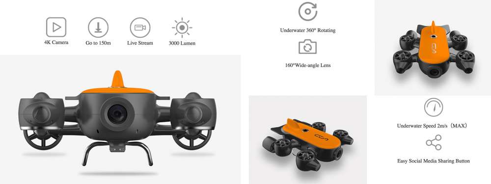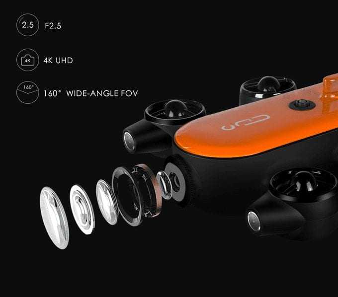 …και έναν αισθητήρα 4K με 160º φακό που ενισχύεται με color-correcting φίλτρα για 8-megapixel φωτογραφίες. Οι κατασκευαστές υπόσχονται και 1080p live stream στην επιφάνεια. Α!, έχει και 3,000-lumen LED φώτα.