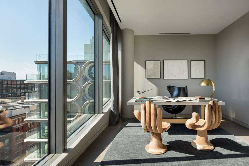 Μιλάμε για 637 τετραγωνικά μέτρα χώρο με αξία $50 million USD. Η ιδιοκτησία καταλαμβάνει τρεις ορόφους ενός κτιρίου με παράθυρα για να έχεις θέα απρόσκοπτη της Νέας Υόρκης. Κεντρικό σημείο μια σκάλα σχεδιασμένη από την ίδια τη Hadid.