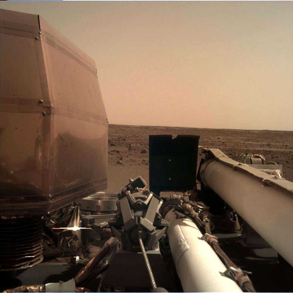 …τρυπάνι στον Γαλαξία. Ναι, θα σκάψουμε στην Άρη. Και θα μάθουμε πολλά και για τη Γη. Tα οκτώ λεπτά του τρόμου πήγαν καλά, από τα 13.000 μίλια/ώρα με το υπερηχητικό αλεξίπτωτο η ταχύτητα έπεσε για να φτάσει ομαλά στην επιφάνεια το σύστημα, οι 12 Μοίρες της “Entry Flight Path Angle” για να μην καεί το διαστημικό σύστημα InSight ήταν σωστές και νάτη! Η παραπάνω είναι η πρώτη εικόνα που μας ήρθε στη Γη. Δείτε.