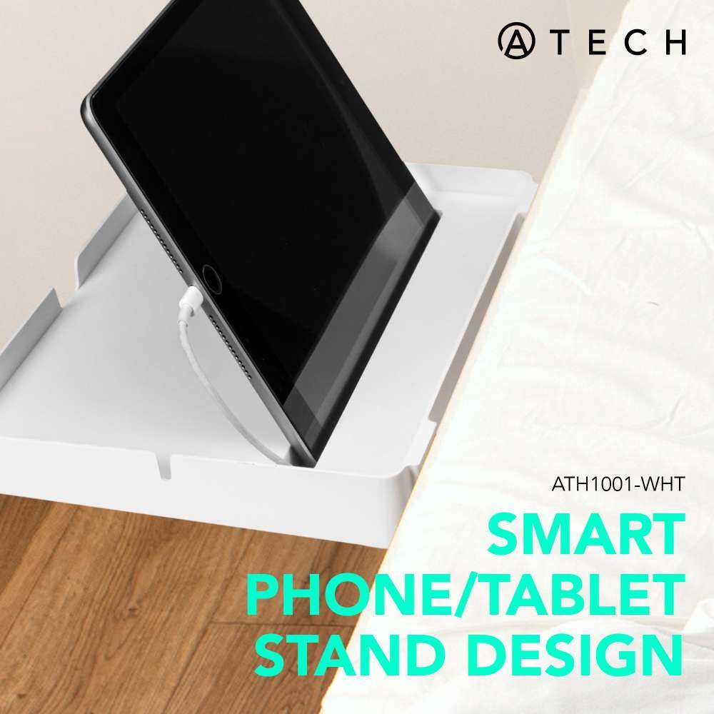 - PHONE TABLE & STAND: Small table fix on bedside for charging mobile devices. The slot on table use as phone/tablet stand and access for charging cable.