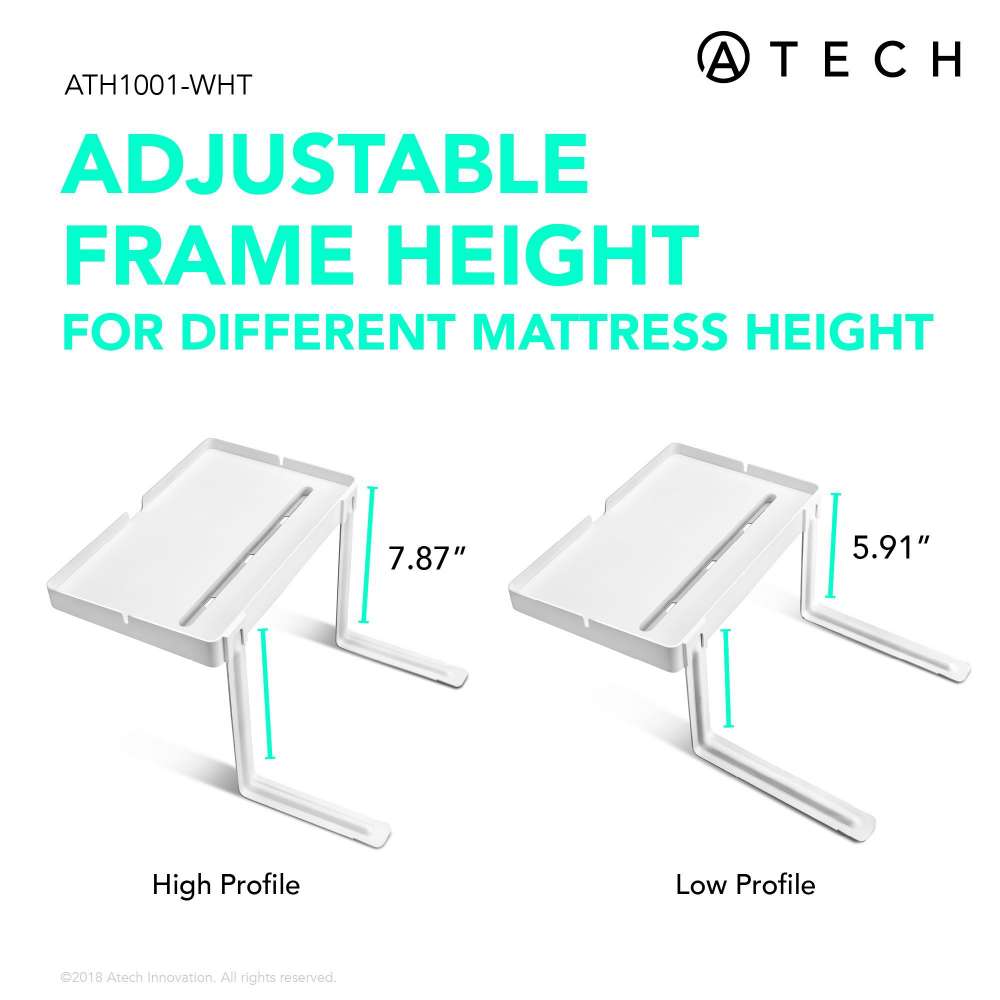 - 2 TABLE HEIGHTS: Adjustable leg in two heights; 7.87inch or 5.9inch for a thick & thin mattress. Select the direction of the frame and make sure that the round hole meets the tray part.