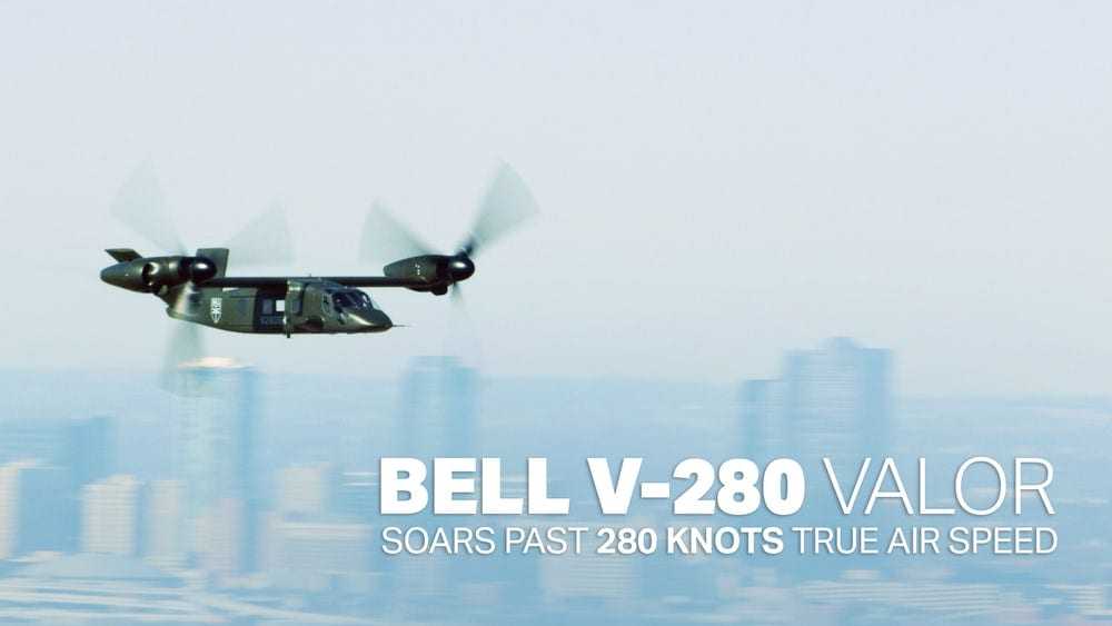 Το Bell V-280 Valor tiltrotor κατάφερε να φτάσει τους 280 κόμβους. Ναι, 518 χλμ/ώρα ή διπλάσια ταχύτητα από ένα συμβατικό ελικόπτερο. Η πτήση έγινε μόνο στο Flight Research Center στο Arlington του Texas μετά από 85 ώρες πτήσης και 180 rotor-turn ώρες.