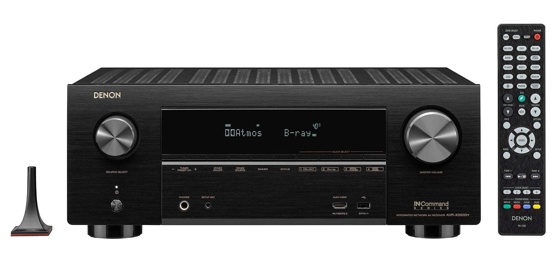 “Immerse yourself in high-power home theater with the Denon AVR-X3600H. With 105W per channel (8 ohms, 20Hz-20kHz, THD .08%, 2 ch driven), the performance-tuned Denon amplifier delivers an amazing 3D audio experience with support for Dolby Atmos®, DTS:X™, DTS Virtual:X®, Dolby Atmos Height Virtualization Technology and new IMAX Enhanced. Supports the latest 4K video technologies — including Dolby Vision™, HDR10, and HLG as well as 4K video upscaling and ALLM — to ensure your TV or projector powers the ultimate in picture brightness, contrast and clarity.