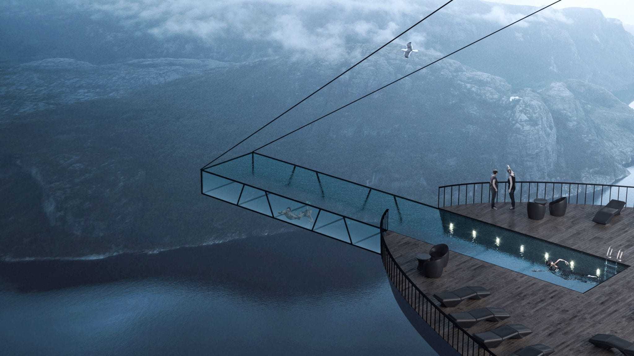 …Preikestolen, το Cliff Concept Boutique Hotel είναι μια απίστευτη εμπειρία στα 1,982 πόδια! Στο Lysefjorden Fjord με μια… infinity pool συγκλονιστική!
