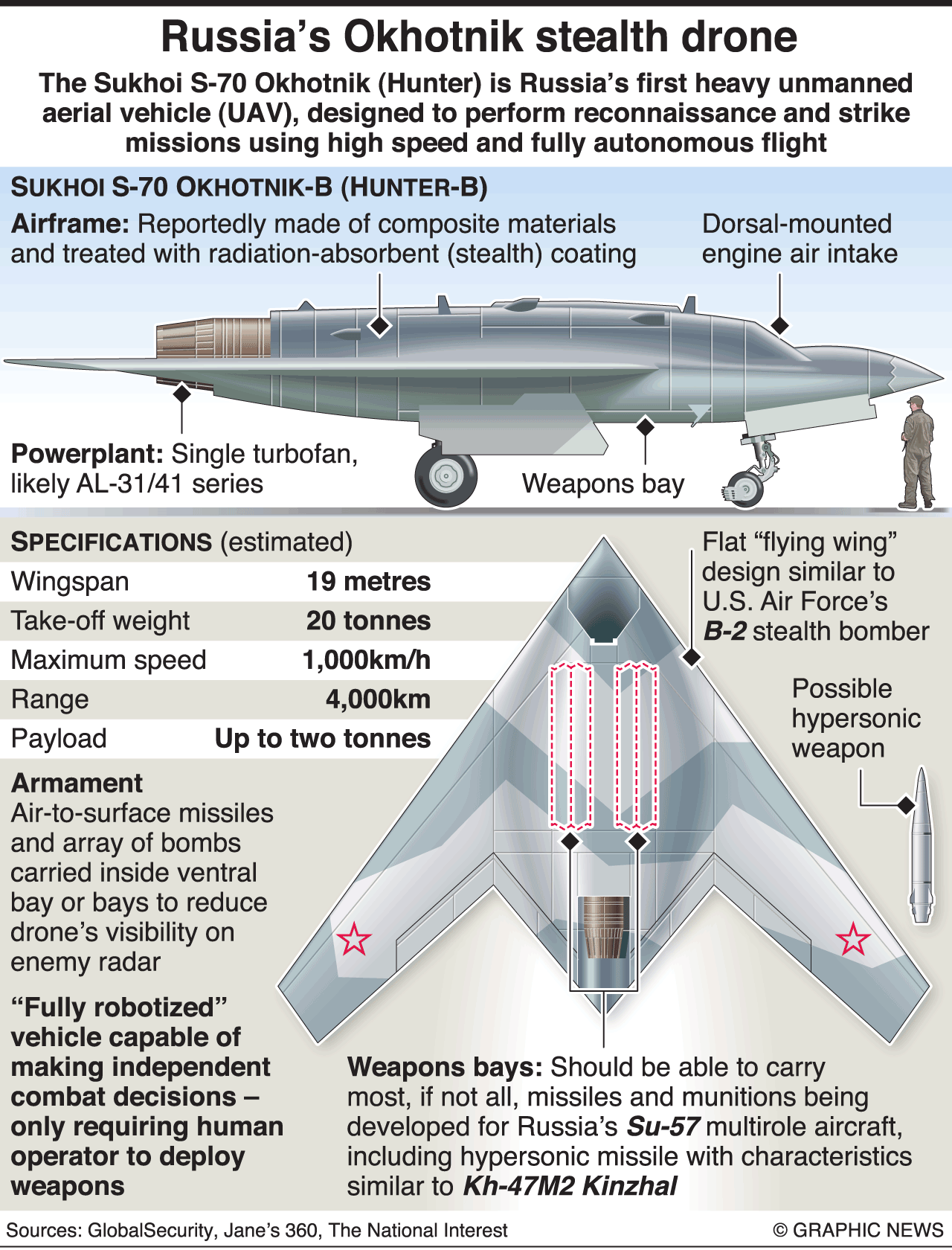 consumer electronics Το ρωσικό Okhotnik “Hunter” Μη Επανδρωμένο Εναέριο Όχημα gadgetfreak 6 years ago Είναι η Sukhoi που ανέλαβε τη σχεδίαση του πρώτου UAV με πραγματικό.. ενδιαφέρον! Με βάρος ανάμεσα στους 20 και τους… …25 τόνους και επιχειρησιακή χρήση για 5000 χιλιόμετρα, οι Ρώσοι μιλάνε και για υπερηχητική πτήση (!) στα 1,400 χλμ/ώρα. Related posts Assassin’s Creed Unity In-game cinematic gadgetfreak 11 years ago NEW – η 32MP full frame Sony a920 DSLR τον Αύγουστο; gadgetfreak 15 years ago Το νέο Sony UBP-X500 gadgetfreak 7 years ago