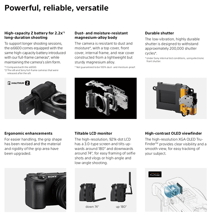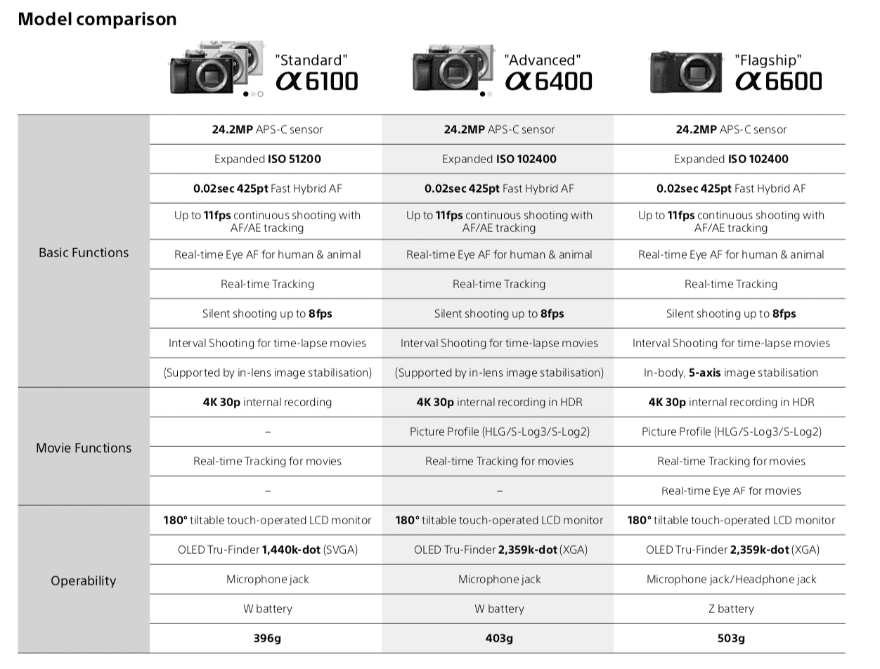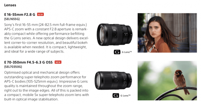…Sony A6600 και Sony A6100. Μαζί θα παρουσιαστούν και δύο φακοί. Οι 16-55mm F2.8 G(SEL1655G) και 70-350mm F4.5-6.3 G OSS (SEL70350G).