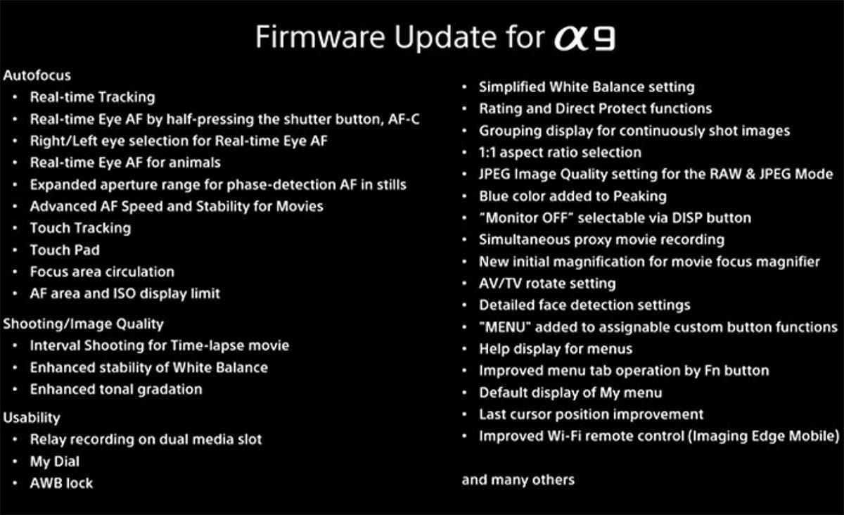 Η Sony μόλις έριξε ένα νέο firmware update για τη α9 full-frame mirrorless (model ILCE-9), ΚΑΙ, δίνει πλέον και λειτουργίες…