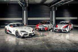 …customer racing teams. Αν όχι – και μάλλον όχι- να σας ενημερώσουμε πως το GT Supra GT4 είναι ένα εργαλείο φανταστικό. Με μια tuned για αγώνες έκδοση του εξακύλινδρου Supra 3.0L με 430 ίππους, Akrapovič εξάτμιση, fiber composite μπροστά splitter και πίσω πτέρυγα, racing φρένα, Pirelli ελαστικά, roll cage, FIA καθίσματα αγωνιστικά και τιμόνι GT4, όπως και carbon στα όργανα.