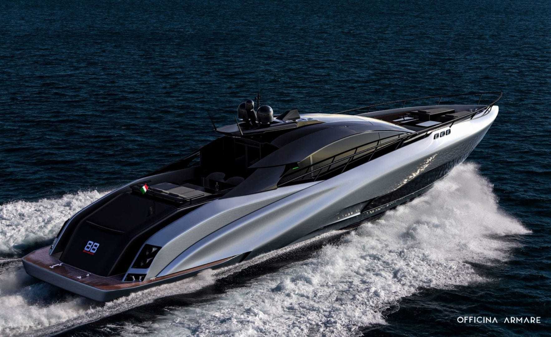 …limited-edition hypercars όπως το Lamborghini Centenario Roadster. Το A88 Gransport έχει μήκος 27m και είναι από τα ομορφότερα ‘αντικείμενα’ που έχουμε δει εκεί έξω. Το A88 έχει ισχύ 2,600 ίππων που είναι πέντε φορές μεγαλύτερη ισχύ από το προηγούμενο σκάφος της εταιρίας, το A43.