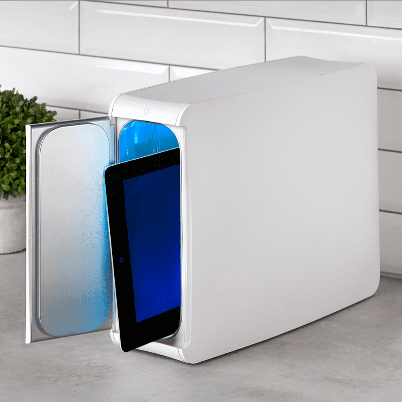 Με φως UV-C, είναι μια τεχνολογία που έχουν και στα νοσοκομεία. Τα tablets, τα χειριστήρια, τα μπουκάλια του μωρού και άλλα είναι ευπρόσδεκτα. Δύο UV λάμπες με ζωή 10,000 ώρες ενώ μέσα έχει και μια θύρα USB όπως και μια USB-C για να φορτίζονται οι συσκευές την ώρα της απολύμανσης.