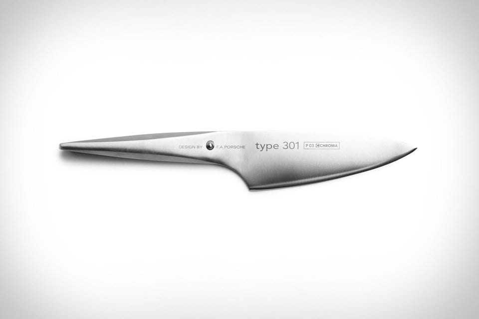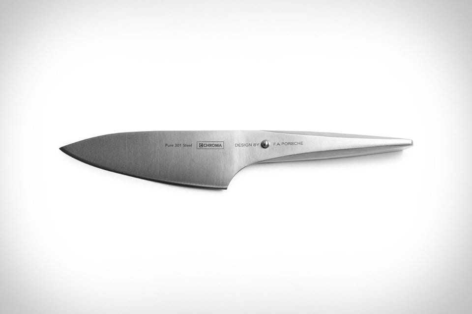 …301 ανοξείδωτο ατσάλι ενώ την επιμέλεια για τη δημιουργία τους είχε ο Αυστριακός σεφ Jörg Wörther. Ο Wörther συνεργάστηκε με την Porsche από 2001 και είχαν μαζί δημιουργήσει τα μαχαίρια Chroma ενώ ήταν διάσημος για το πόσο άριστα διαχειρίζονταν τα… λαχανικά! Αυτό έχει μήκος 15.2 εκατοστά και είναι ένα Universal Μαχαίρι που αποκαλούν “ultimate knife.”