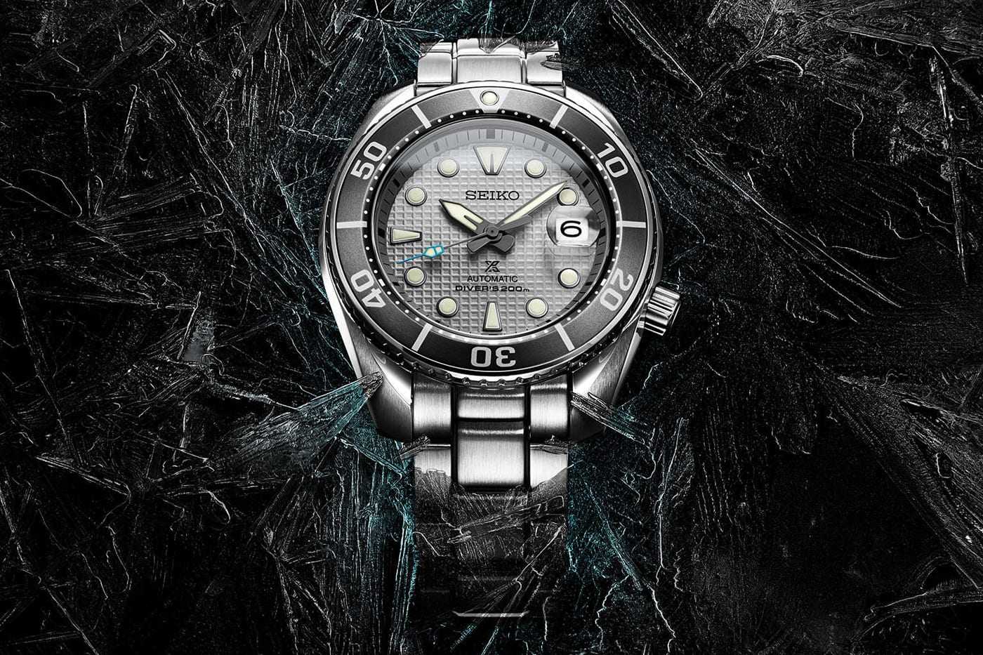 Σε μπλε, πράσινο ή και γκρι, με ειδικό “waffle-textured” δείκτη και κρύσταλλο από ζαφείρι. Μηχανισμός Caliber 6R35. Τα χρώματα που έχουν επιλεγεί έχουν σχέση με τα χρώματα που φαίνονται σε διάφορες φάσεις σε έναν παγετώνα. Το Seiko Prospex “Ice Diver” έχει απόθεμα 70 ώρες και εκεί στην Seiko USA κοστίζει $900.