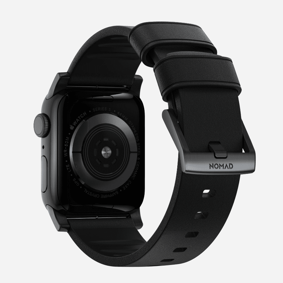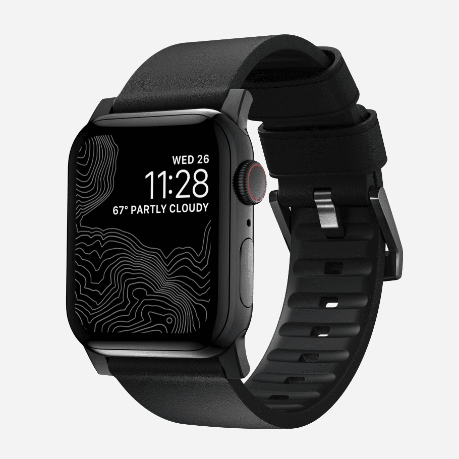 …ψηφιακό ρολογάκι είναι φτιαγμένο από αδιάβροχο δέρμα. Με ένα “rugged fluoroelastomer” που όπως λένε είναι φτιαγμένο για αντοχή. Τα στοιχεία σύνδεσης είναι φτιαγμένα με “metal injection” σε ανοξείδωτο ατσάλι 316L. Ταιριάζει από τα Series 0 μέχρι και στο νέο Series 6.
