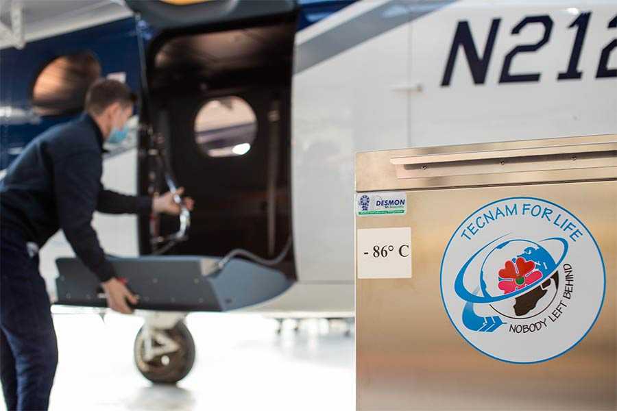 …ελαφρό αεροσκάφος. Το οποίο έχει μετατρέψει ώστε να μπορεί να μεταφέρει εμβόλια κατά της COVID-19. Μερικά από αυτά απαιτούν θερμοκρασίες από -70°C έως ±10°C -όπως ξέρουμε με τη Pfizer- και για αυτό η Tecnam συνεργάστηκε με την εταιρία κατασκευής ψυγείων Desmon για να βρει τις λύσεις.