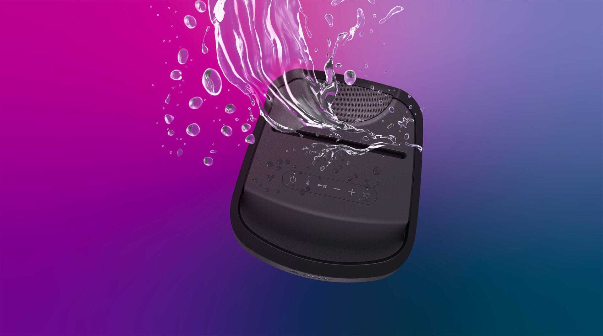 Προετοιμάστε το πάρτι στον κήπο σας για κάθε περίσταση. Τα ηχεία XP700 και XP500 είναι αδιάβροχα με βαθμό προστασίας IPX4[4]. Συνεχίστε το πάρτι σας άφοβα ακόμα κι αν πέσουν μερικές σταγόνες βροχής.