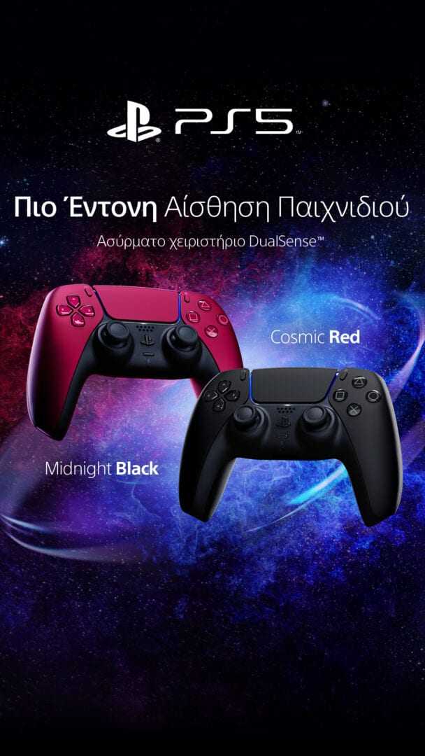 Tον επόμενο μήνα το χειριστήριο DualSense™ θα είναι διαθέσιμο σε δύο νέες αποχρώσεις: Midnight Black και Cosmic Red. Η κυκλοφορία τους σηματοδοτεί…