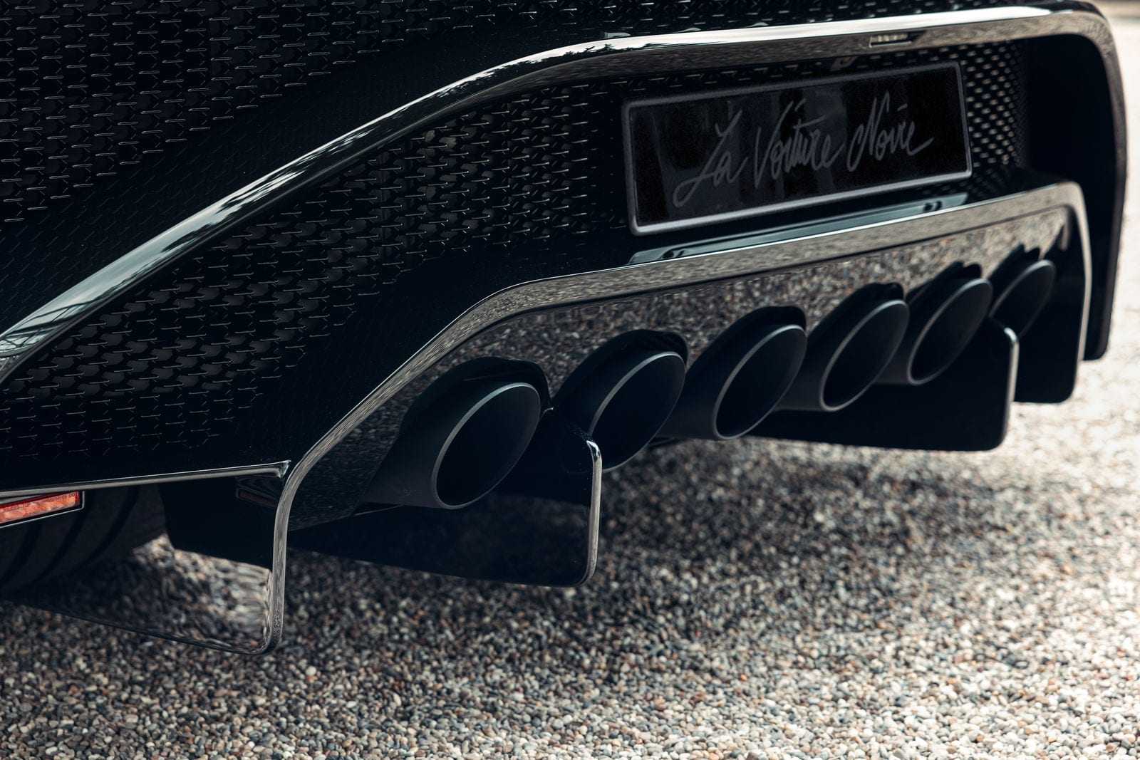 Κάτω από το καπό, το κινητήρας με τα 4 turbo και τα 1,479 άλογα, ο 8.0λιτρος W16 της Chiron. Από την άλλη η La Voiture Noire έχει νέα εντελώς carbon fiber panel, μαύρο glossy χρώμα και νέο, μακρύτερο μεταξόνιο.