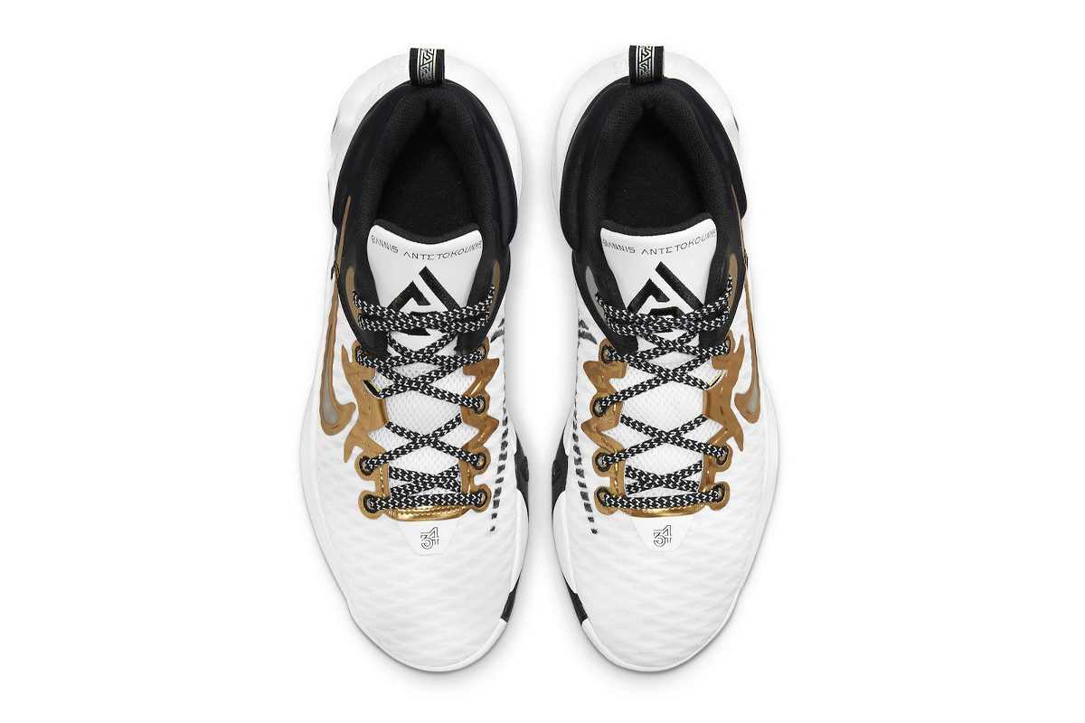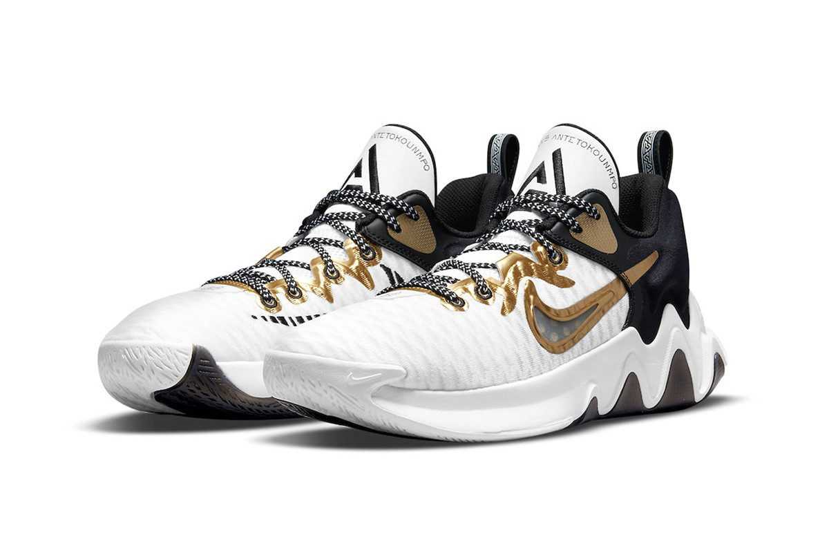 …θα γράψουμε ποτέ! Η χρωματική απόχρωση “Championship” αφορά άσπρο, μαύρο και στοιχεία από metallic gold. Το διαφανές Swoosh της εταιρίας ξεχωρίζει με το χρυσό περίγραμμα ενώ το logo του MVP Γιάννη Antetokounmpo, το “A” logo τονίζεται στη γλώσσα μαζί με το 34 του.