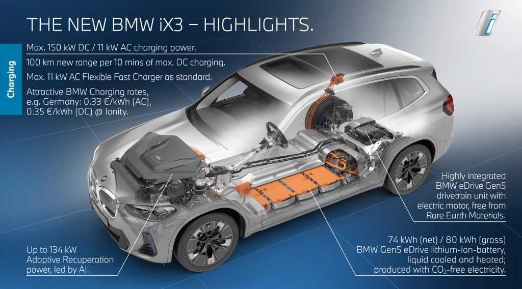Νέα, 5ης γενιάς BMW eDrive τεχνολογία που καλύπτει μετάδοσης, μπαταρία ενώ το νέο σύστημα high-voltage μπαταρίας έρχεται στην φρέσκια BMW iX3: υπόσχεται 460 ηλεκτρικά χιλιόμετρα με μια φόρτιση σε (WLTP).