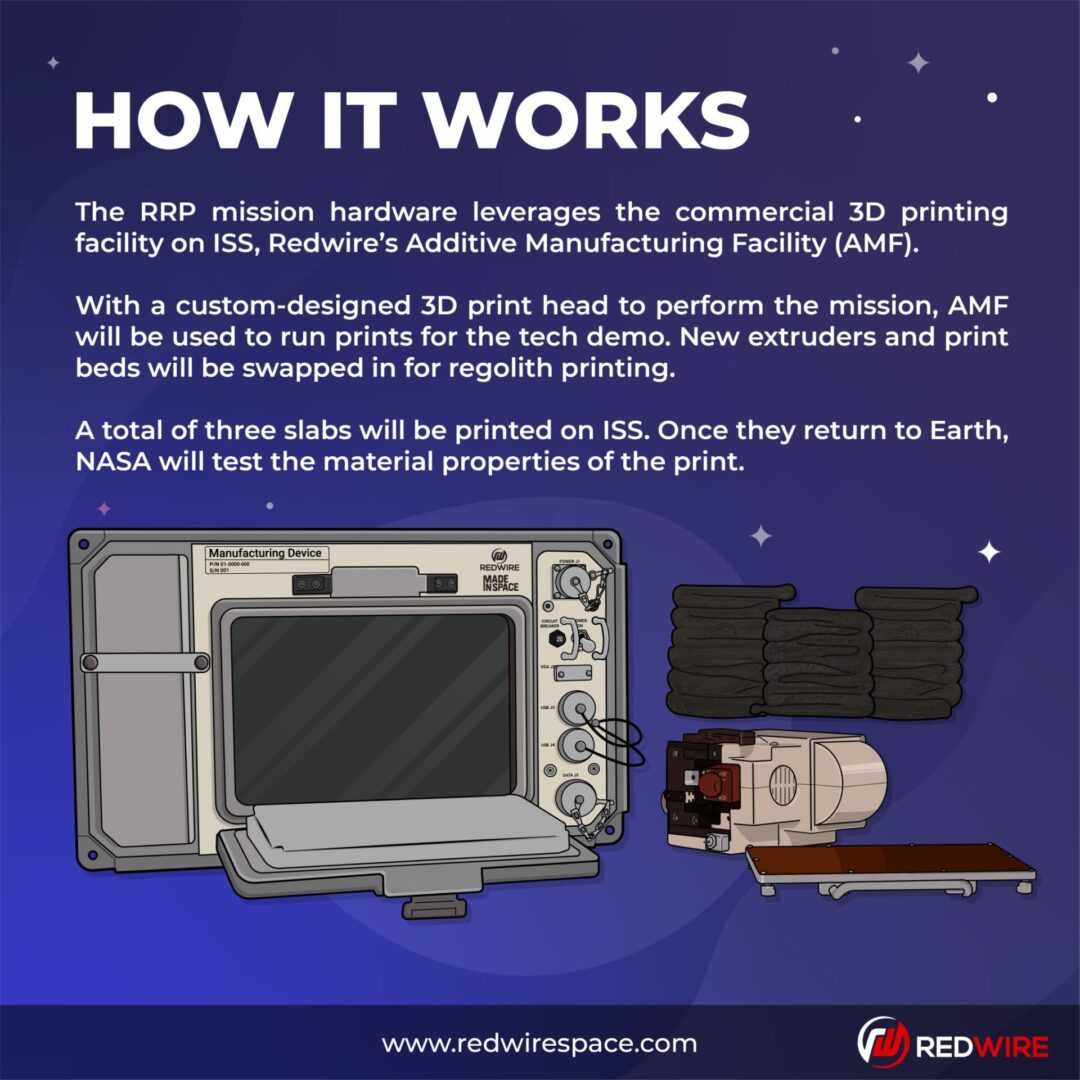 “The Redwire Regolith Print mission is an important step for proving these advanced manufacturing processes and ultimately accelerating NASA’s exploration timeline to establish a permanent human presence on the Moon,” said Michael Snyder, Chief Technology Officer of Redwire, in a statement.