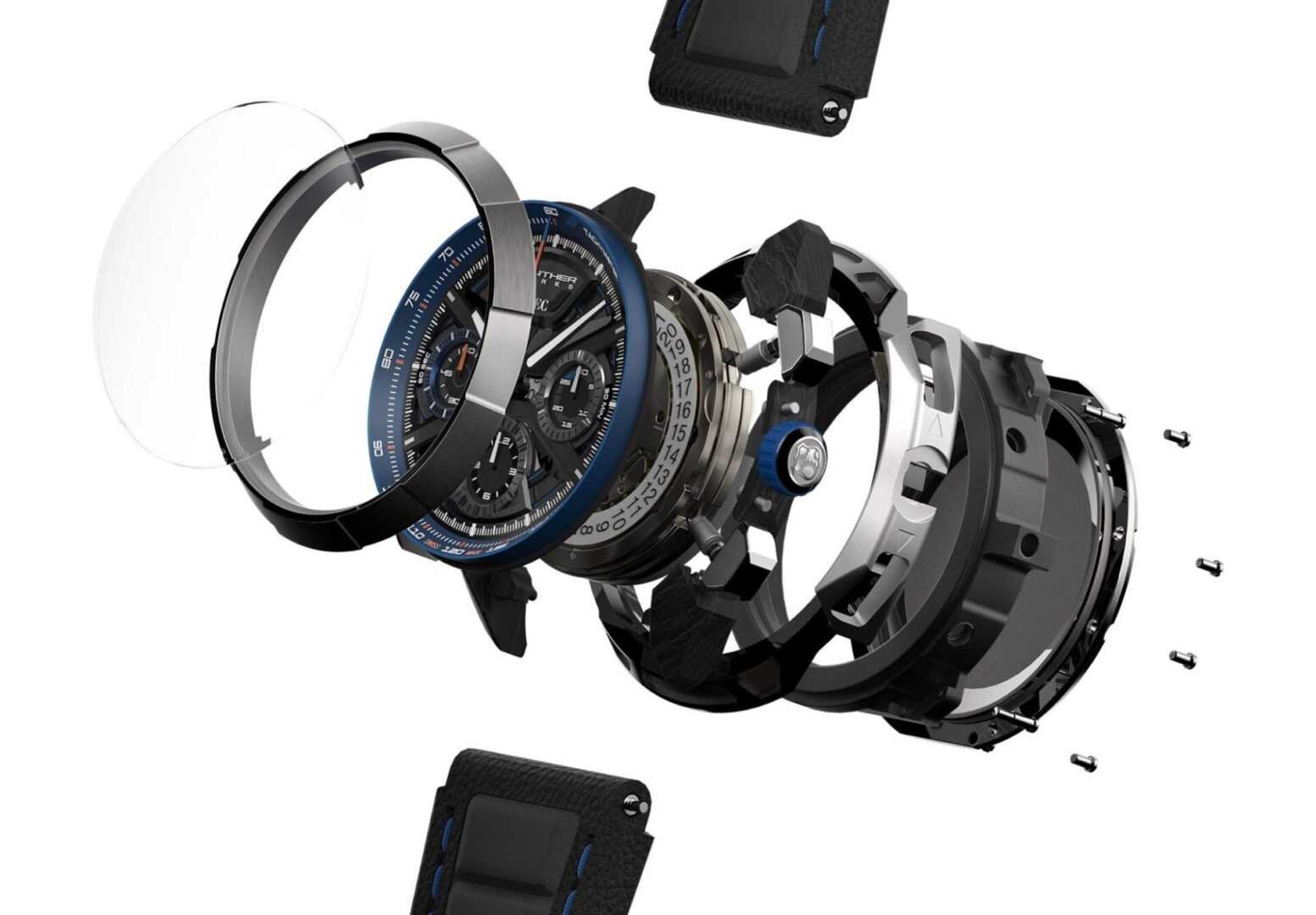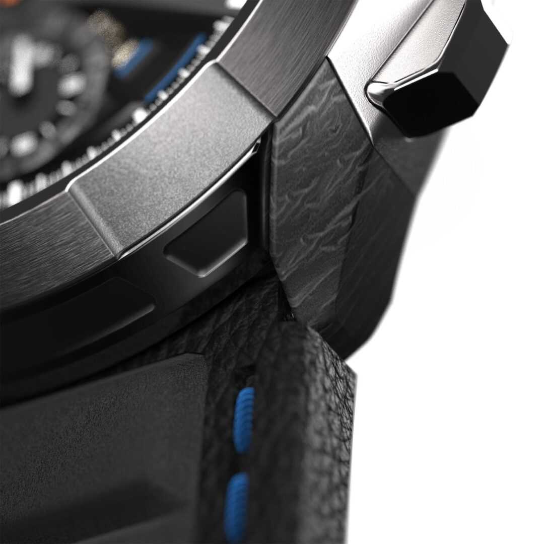 …Porsche 993 Remastered. Η κάσα είναι φτιαγμένη από έξι τμήματα και carbon fiber που προέρχεται από κατασκευές για την Porsche. Η κάσα είναι των 44mm κατασκευασμένη από ανοξείδωτο ατσάλι. Ο μηχανισμός είναι Sellita SW510 B με απόθεμα για 63 ώρες.