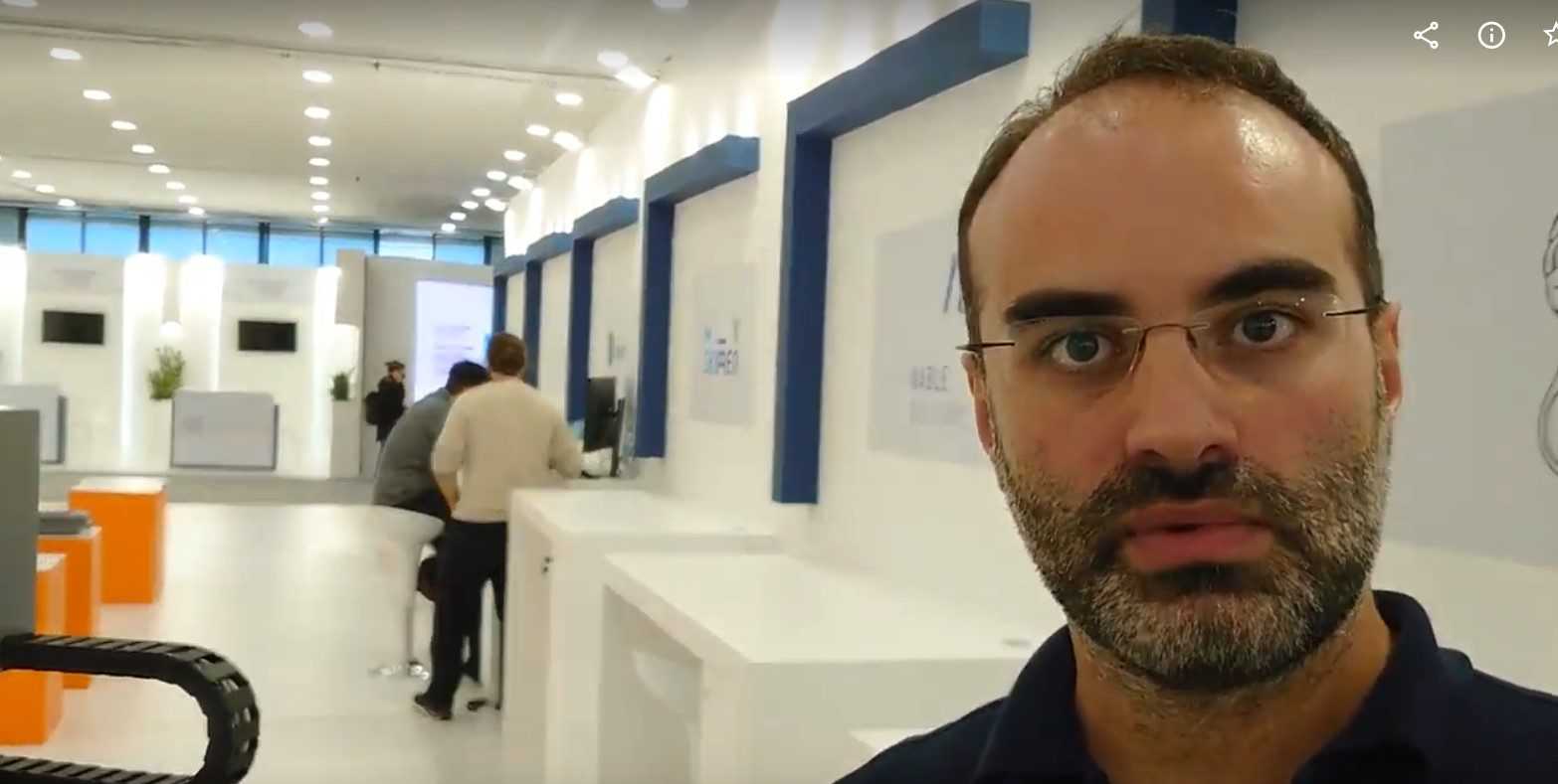 Στα λιγοστά της τετραγωνικά μέτρα στην έκθεση Beyond 4.0, η προσωπική νεοφυής επιχείρηση του νεαρού ειδικού στην μηχανολογία αυτοματισμών (σ.σ Automation Mechatronics Engineer) Γιώργου Χάιτα ήταν στημένη γύρω από μία εντυπωσιακή ρομποτική μηχανή.