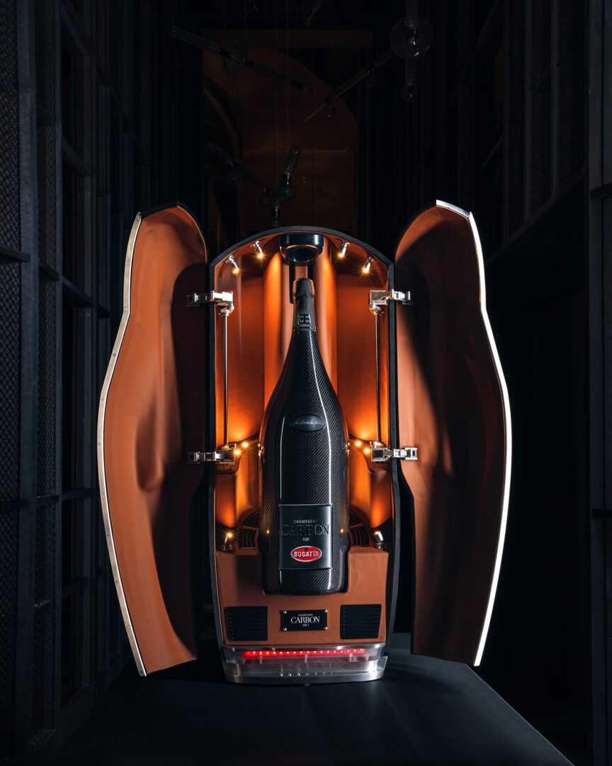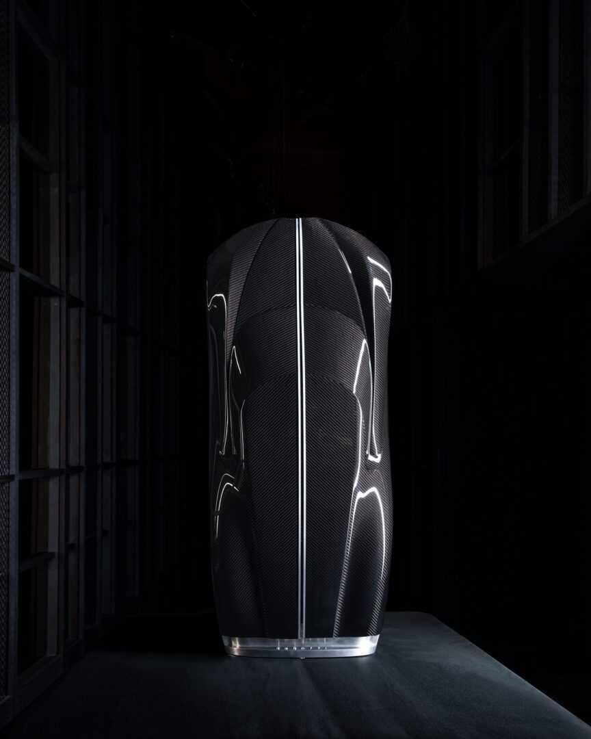 Κινητήρας μοναδικός που έδωσε την έμπνευση σε ένα 15λιτρο carbon μπουκάλι που ετοιμάστηκε μετά από 150 ώρες δουλειάς και μετά από 37 βήματα κατασκευής. Κάπου 314 στρώματα carbon fibre εδώ, όπως στις BUGATTI hypersport μηχανές.