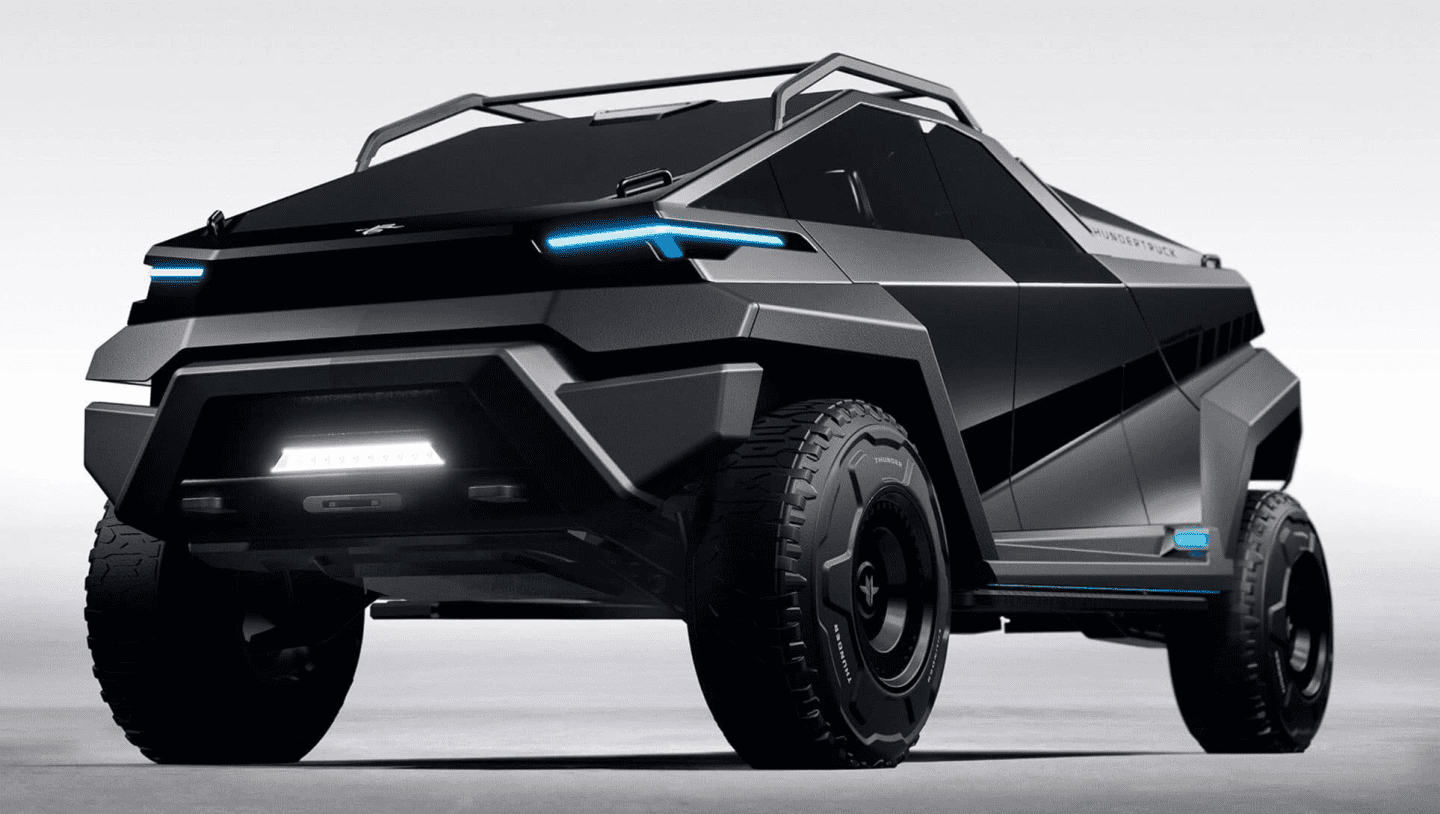 Το Thundertruck το έχει γεννήσει μια εταιρία “creative consultancy” από το Λος Άντζελες που “instead of baking bread or making puzzles”, αποφάσισε “to make a new state-of-the-art EV truck”.