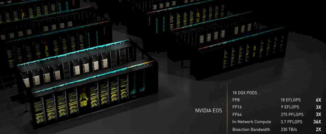 Η κατασκευή γίνεται με μια custom έκδοση της TSMC 4nm διαδικασίας κατασκευής και πέρα από τα 80 δις transistor οι νέοι Hopper Tensor cores έχουν τις Transformer Engines, έναν ειδικό tensor core που έχει σχεδιαστεί να επιταχύνει τα ML μοντέλα με νέες DPX οδηγίες και “dynamic programming for GPUs”, NVLink 4 με 900GB/s bandwidth ανά chip.