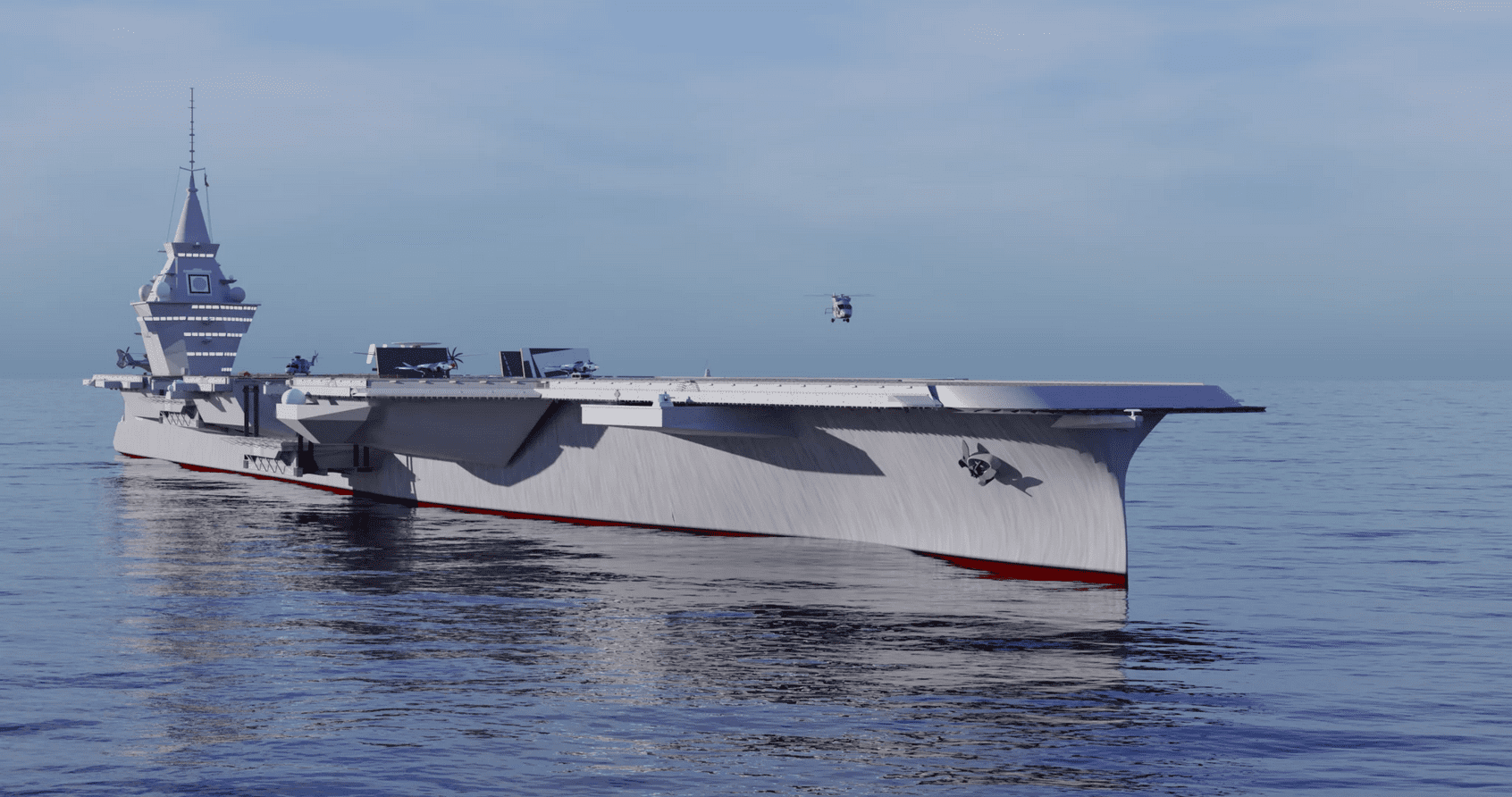 …παρουσίασε ένα βίντεο με κάτι παραπάνω από 3 λεπτά παρουσίασης του αεροπλανοφόρου. Μήκος πάνω από 300 μέτρα, πλάτος 80 και εκτόπισμα 75,000 τόνους, λίγο πιο μεγάλο από τα Queen Elizabeth, κόστος που υπολογίζεται στα 5 δις. ευρώ. Πλήρωμα 2000 άτομα. Εισαγωγή σε υπηρεσία με τη Γαλλία το 2038.