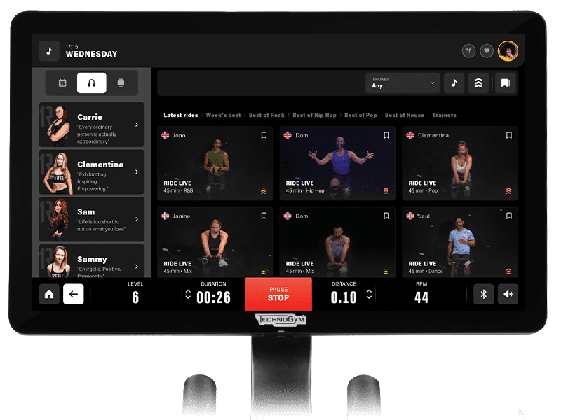Το Technogym Ride δουλεύει με τις cycling apps Zwift, Strava, ROUVY, TrainingPeaks, Kinomap και Bkool, αλλά και τα Netflix και Eurosport. Υπάρχει και το πρόγραμμα TNT (Technogym Neuromuscular Training) που ετοίμασε το Technogym Research Center για να βελτιώσει τον μεταβολισμό και το καρδαγγειακό σύστημα.